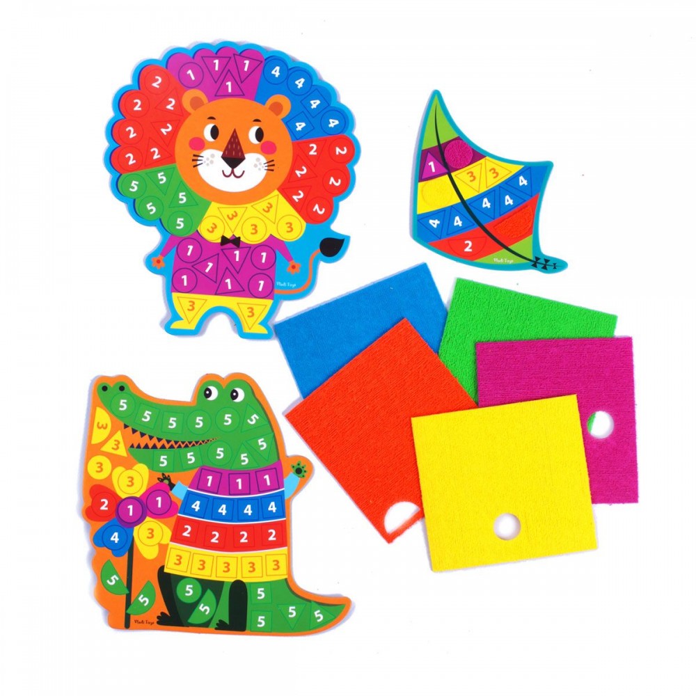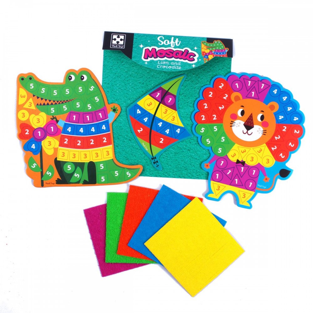Набір для дитячої творчості зі плюшевою мозаїкою. Складається з 5-х яскравих картонних основ та трьох мʼяких планшетів з елементами мозаїки. На основах контуром зображені підказки про те, які елементи потрібно клеїти. Набір допомагає малюкам розвинути дрібну моторику та відкрити нові творчі здібності.