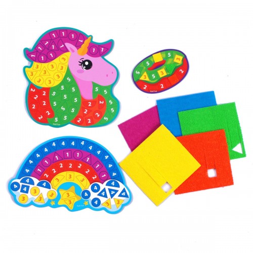 Набір для дитячої творчості зі плюшевою мозаїкою. Складається з 5-х яскравих картонних основ та трьох мʼяких планшетів з елементами мозаїки. На основах контуром зображені підказки про те, які елементи потрібно клеїти. Набір допомагає малюкам розвинути дрібну моторику та відкрити нові творчі здібності.