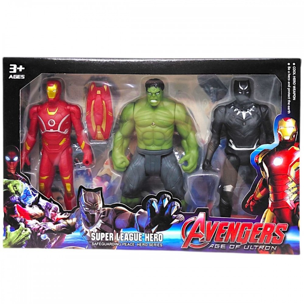 Набір включає три ігрові фігурки супергероїв, виконані в яскравому дизайні з характерними костюмами та впізнаваними деталями. Фігурки призначені для активної гри, створення сюжетів та колекціонування.