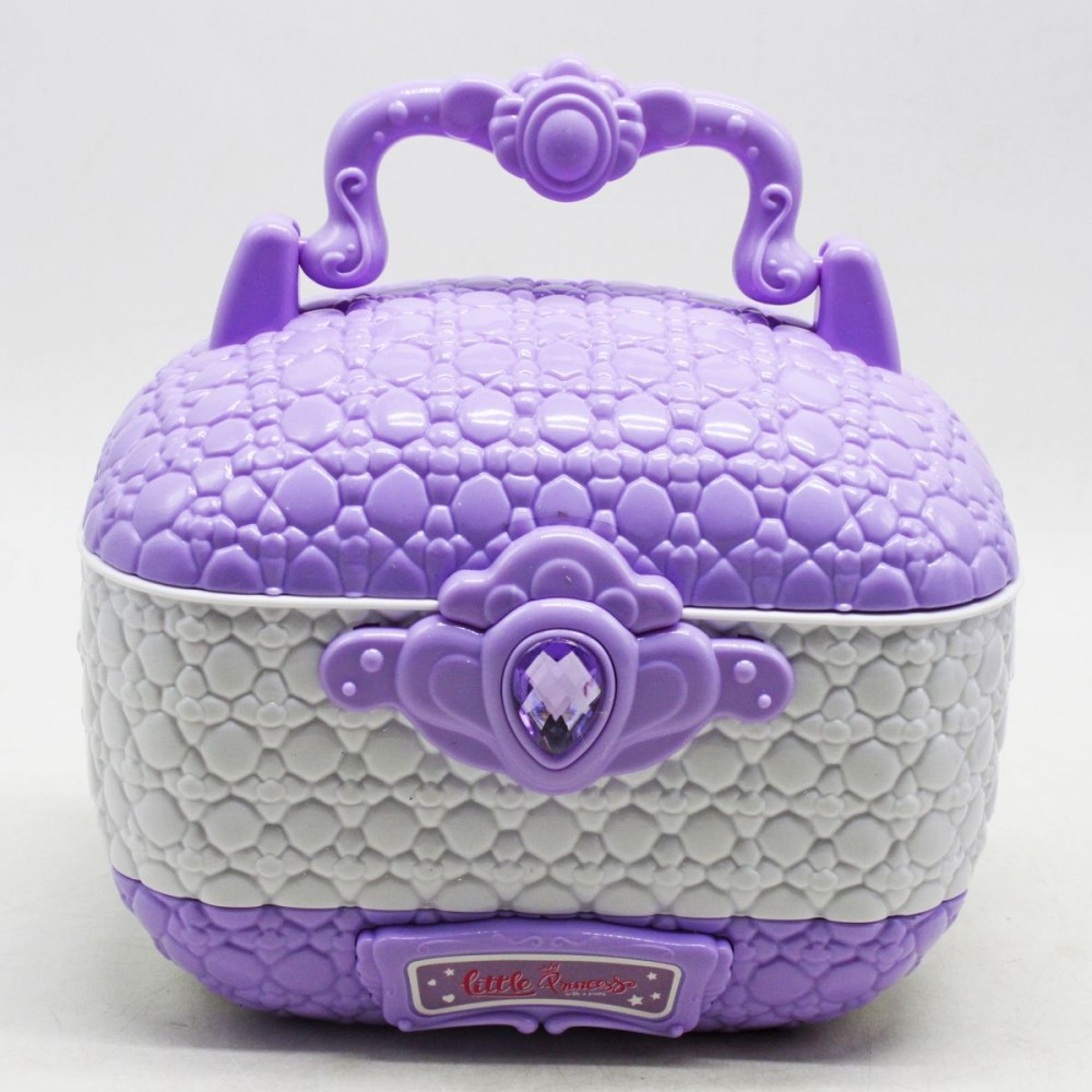 Великий набір косметики для справжньої принцеси. Комплект представлений у красивій пластиковій скриньці, відкривши яку, можна знайти три відділення з різними видами косметики. У наборі є тіні для повік (9 кольорів), румʼяна (2 кольори), аплікатор, 5 пензликів для нанесення макіяжу та гліттер для повік. Також у комплект входить різноманітне приладдя для манікюру та педикюру: пилка для нігтів, роздільник пальців для педикюру. 2 лаки для нігтів, 12 накладних нігтів та наклейки для манікюру. На внутрішній стороні кришки скриньки є зручне дзеркальце (перед використанням слід зняти захисну плівку).