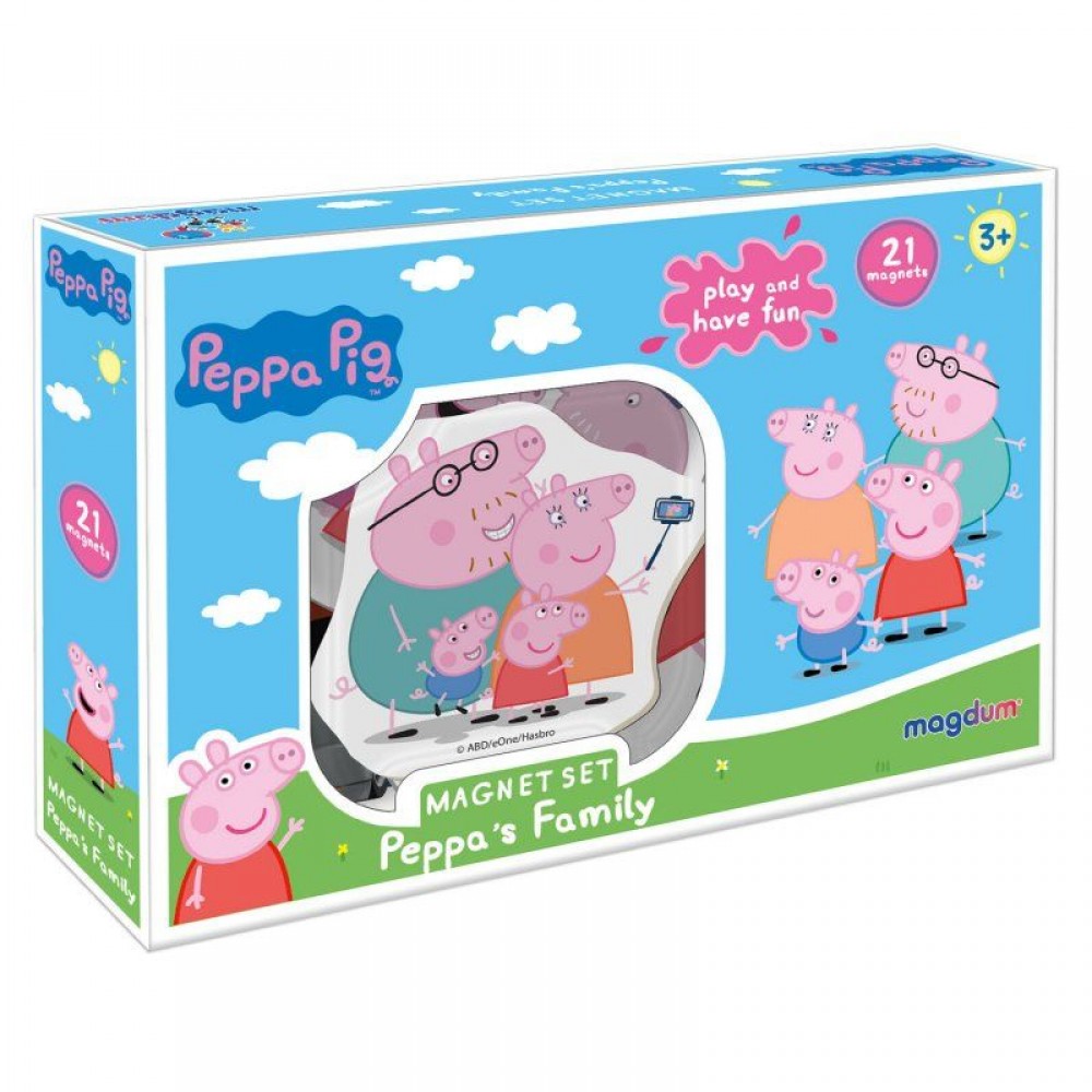 Набір магнітів із героями популярного мультсеріалу "Peppa Pig". У комплекті 21 магніт. Кожен елемент набору складається з трьох шарів: ламінованої картинки, міцного картону, магнітної частини. Комплект для дітей від 3 років.
