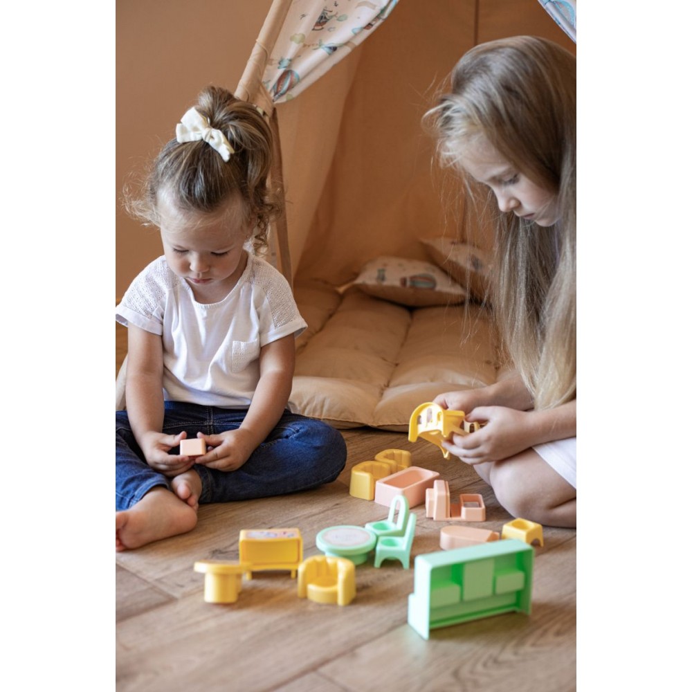 Набір меблів для ляльок (спальня) - це абсолютно новий асортимент еко-іграшок, виготовлених з біопластику. Біопластик - це еко поліетилен високої щільності, що складається з цукрової тростини. Цукрова тростина - відновлювальна сировина, тоді як синтетичний поліетилен виготовляється з викопної сировини у вигляді сирої нафти та нафтового газу. Під час росту, цукрова тростина забирає вуглекислий газ з атмосфери й виробляє кисень. Тому використання біологічного поліетилену - величезний внесок у зменшення парникових газів. Іграшки виготовлені на основі біопластику не поступаються своїми властивостями іграшкам з пластмаси, такі ж міцні й довговічні. Збережемо довкілля разом! Цей набір стане найкращим подарунком для маленької принцеси. Він містить 7 елементів інтер'єру – ліжко, етажерка, комод, телевізор, а також елементи для ванної - ванна, табуретка та умивальник. Допоможіть дитині створити житло для маленьких друзів, проявити творчі та дизайнерські здібності, навчитись охайності та порядку.