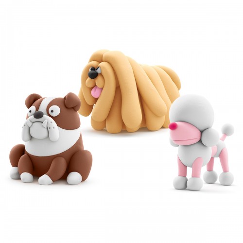 Набір пластиліну, що самостійно твердіє, ЛІПАКА – СОБАКИ-ДРУЗЯКИ: КОМОНДОР МУДІ, БУЛЬДОГ ГІПНО, ПУДЕЛЬ ПОППІ – розважить і малюків, і дорослих. За допомогою анімаційних інструкцій в додатку HEY CLAY, Ви зможете зліпити трьох кумедних героїв. Пластилін твердіє на повітрі протягом 24 годин, після чого можна гратися створеними фігурками.