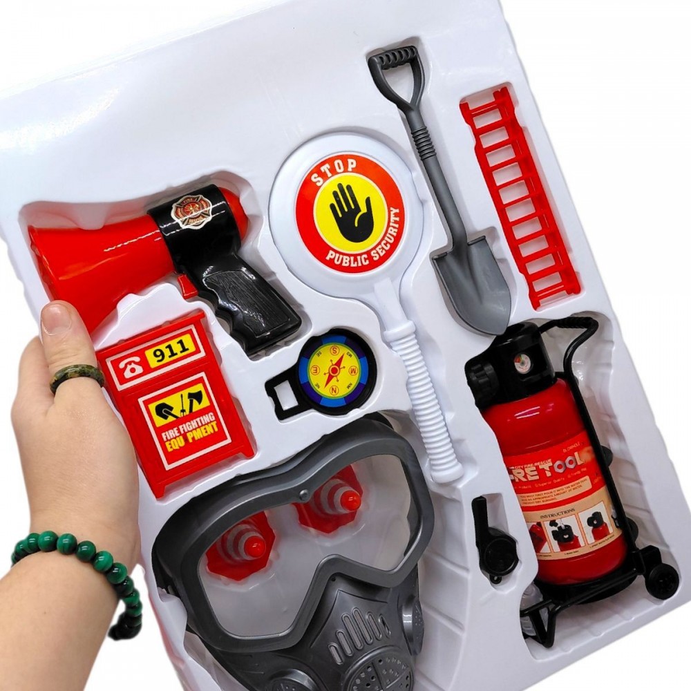 Інтернет-магазин eToys пропонує вашій увазі товар "Набір пожежника (вогнегасник із світлом, звуком сирени та парогенерацією, респіратор, компас, гучномовець, лопата, розкладна драбина, знак “Стоп”) в коробці 40,5х7х30 см" за ціною 533 грн..