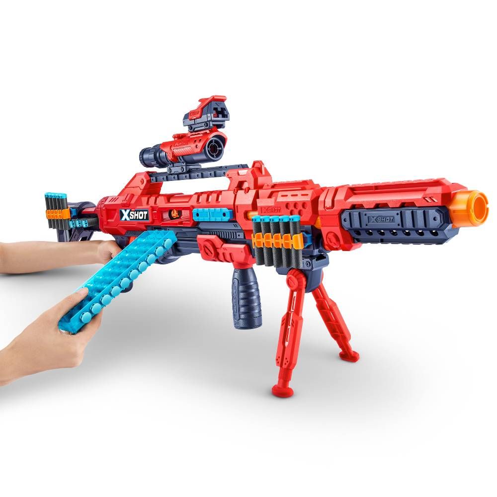 X-Shot Regenerator - це унікальний бластер з 12 змінними насадками, що дозволяє створити понад 1000 унікальних комбінацій бластерів. Використовуйте приціл і сошки для точної стрільби по мішенях або замініть їх на короткий ствол і переднє руків'я для більшої маневреності. Незалежно від вашого стилю, стріляйте з потужною силою зі стрілецької дистанції на 24 м!