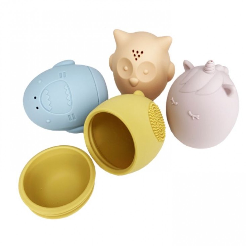 М’який силікон приємний на дотик, не має гострих кутів та підходить для щоденного використання. Іграшки можна використовувати як у ванні, так і під час ігор з водою. Вони допомагають розвивати тактильні відчуття, координацію рухів і фантазію.