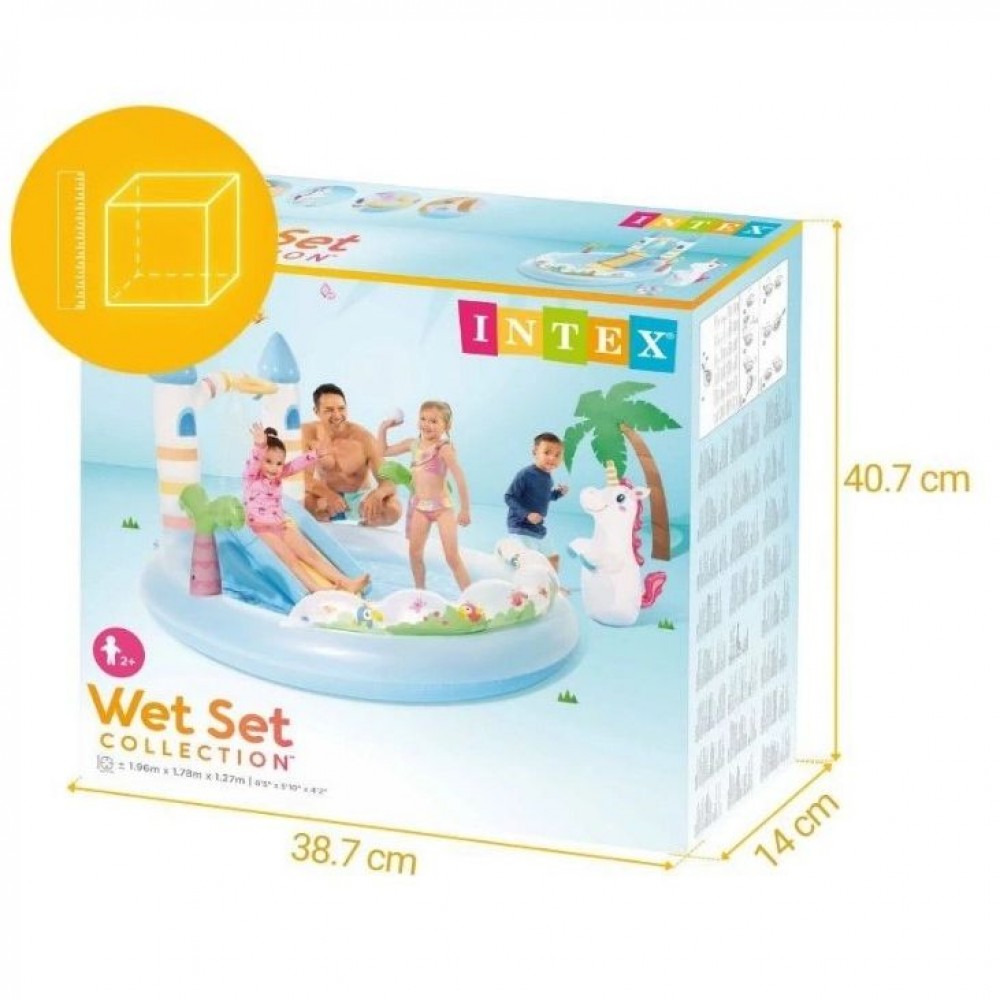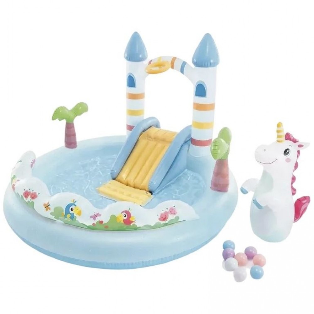 Надувний ігровий центр — багатофункціональна зона для водних ігор дітей від 2 років. Завдяки розміру приблизно 196×178×127 см поєднує басейн, гірку та ігрові елементи, створюючи повноцінний простір для активного відпочинку. М’яка конструкція та кілька повітряних камер забезпечують комфорт і безпечне використання під наглядом дорослих. Яскравий дизайн із фігурками та деталями стимулює уяву дитини та робить гру цікавою на тривалий час.