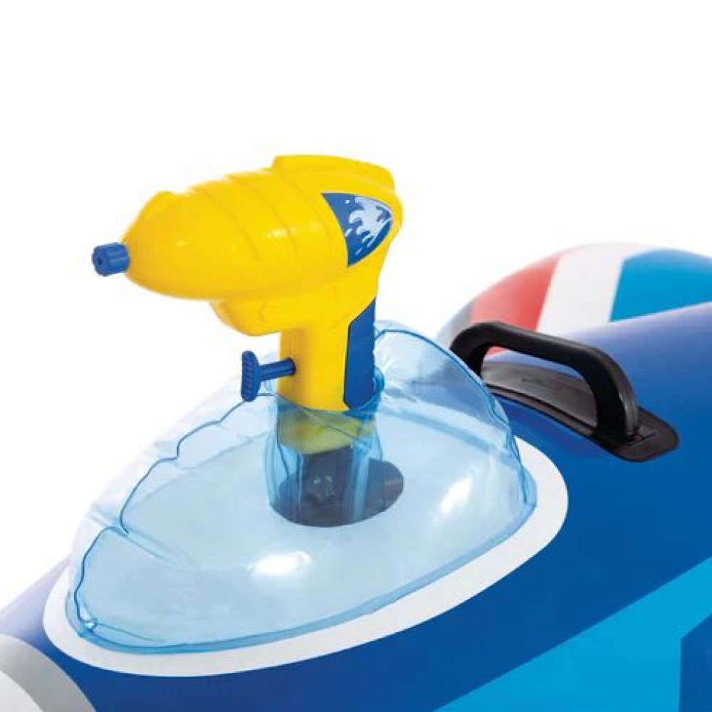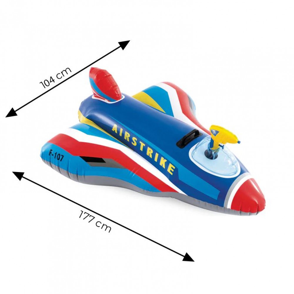 Надувний пліт у формі літака — яскрава іграшка для активного відпочинку на воді. Завдяки довжині приблизно 117 см і продуманій формі, дитина зручно розміщується під час гри. Конструкція має стійку основу та елементи для утримання, що підвищує комфорт і контроль на воді. Підходить для дітей від 3 років, використовується у басейні або на відкритих водоймах під наглядом дорослих. Яскравий дизайн у стилі літака додає емоцій та зацікавлює дитину.