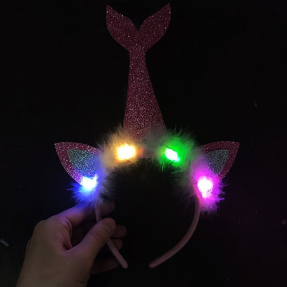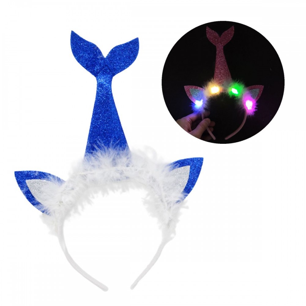 Красивий, пластиковий обруч, прикрашений блисками і мʼяким пухом. Хвіст русалки та вушка виконані із щільного матеріалу та добре тримають форму. Світиться у 3-х режимах. Працює від батарейок (є в комплекті). Діаметр обруча: 22 см. Щоб увімкнути підсвічування, потрібно витягнути заглушку та натиснути на кнопочку за вушком.