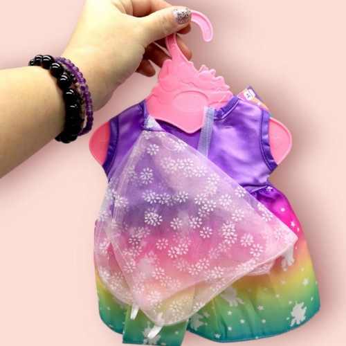Комплект одягу для пупсів стандартного розміру (30-35 см). Ідеальне доповнення для ігор з улюбленими ляльками. У набір входить стильне вбрання, яке легко вдягати та знімати. Зручна вішалка дозволить зберігати одяг акуратно, привчаючи дитину до порядку.