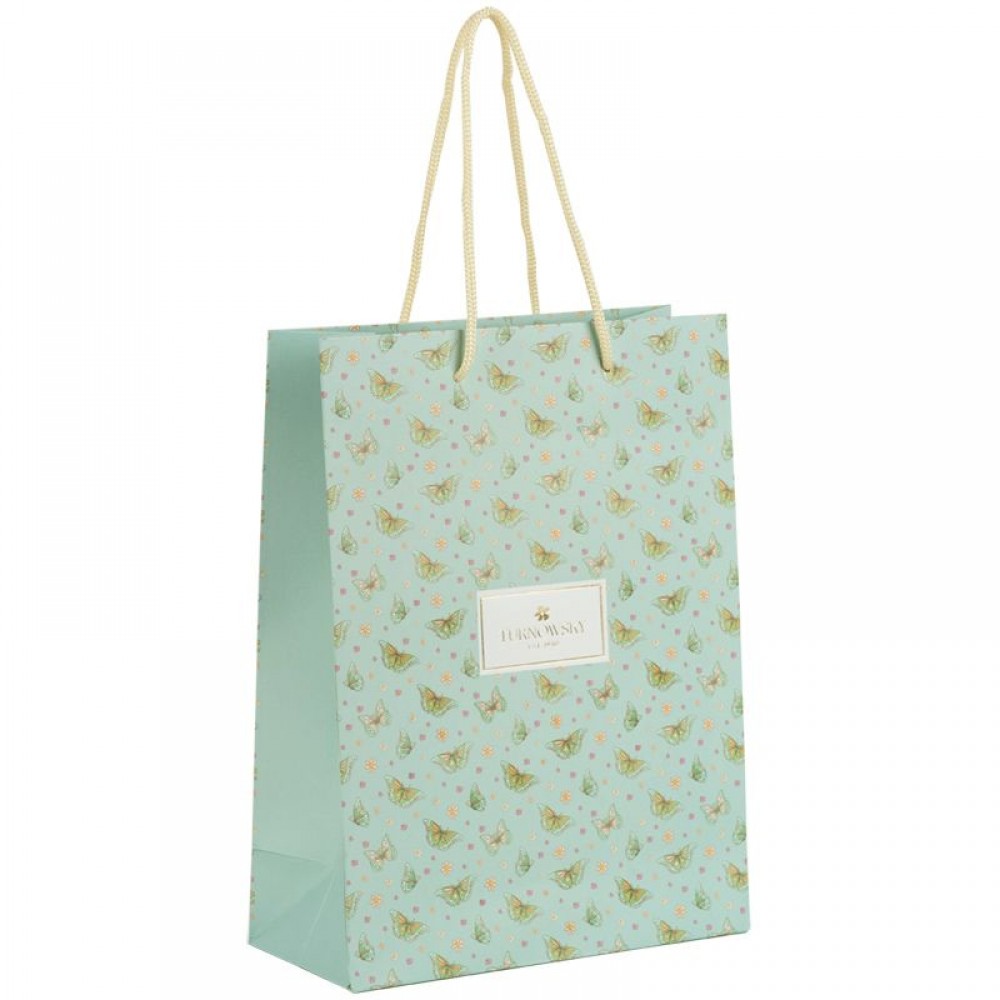 Пакет паперовий подарунковий з ручками. Характеристики: - матова поверхня, фольга; - картон 200 г/м2; - розмір: 18х24х8 см.