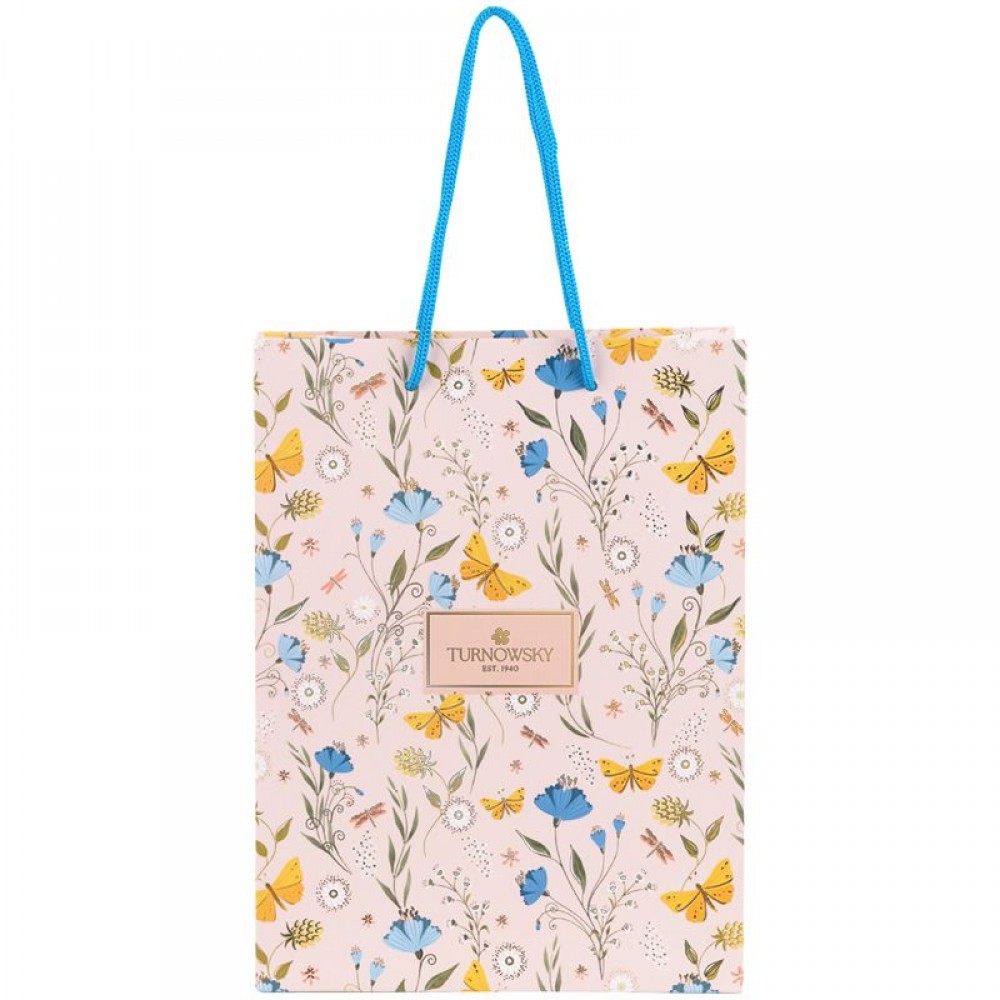 Пакет паперовий подарунковий з ручками. Характеристики: - матова поверхня, фольга; - картон 200 г/м2; - розмір: 18х24х8 см.