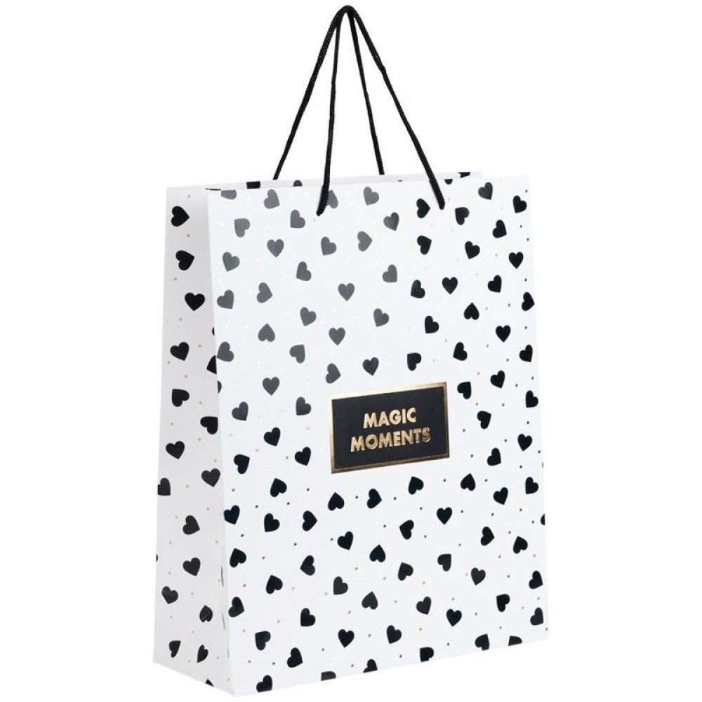 Пакет паперовий подарунковий з ручками. Характеристики: - матова поверхня, фольга; - картон 200 г/м2; - розмір: 26х32х10 см.