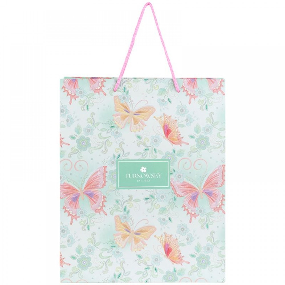 Пакет паперовий подарунковий з ручками. Характеристики: - матова поверхня, фольга; - картон 200 г/м2; - розмір: 26х32х10 см.