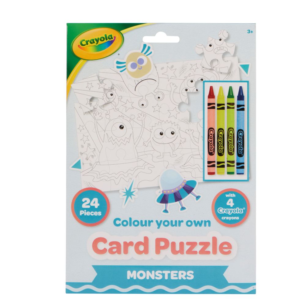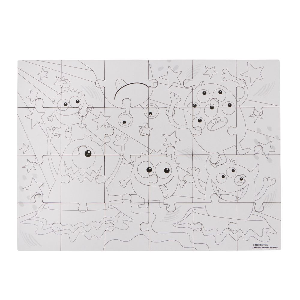 Пазл з ілюстраціями веселих монстрів, набір кольорових олівців.