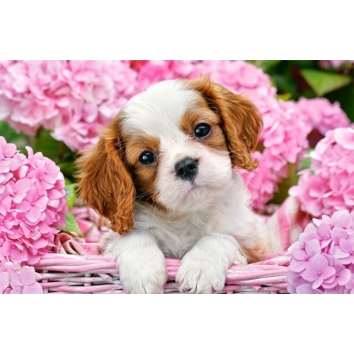 Пазли "Щеня в рожевих квітках", 500 елементів. Розвивають логічне мислення, дрібну моторику рук, посидючість.