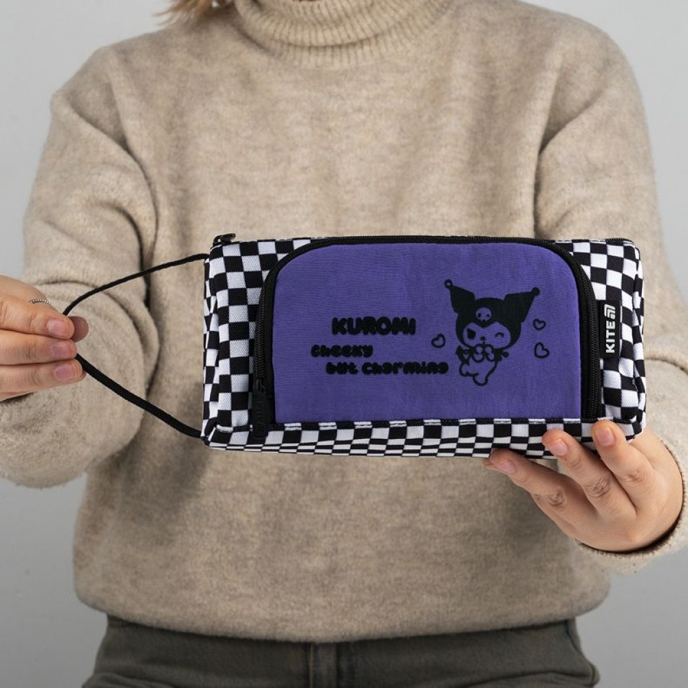 2 відділення на блискавці; ручка; 2 внутрішні кишені; фіксуючі резинки для канцелярії. Декор: об'ємний друк.