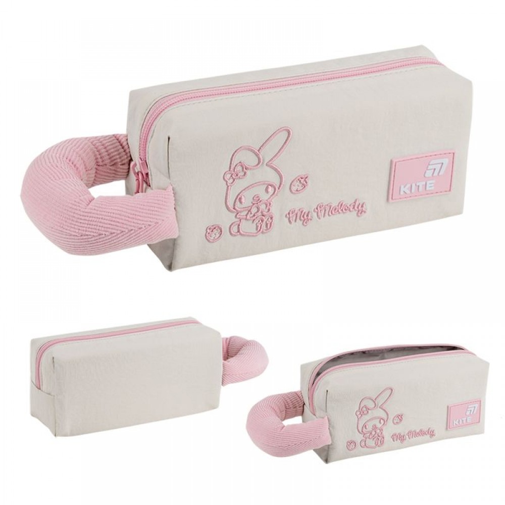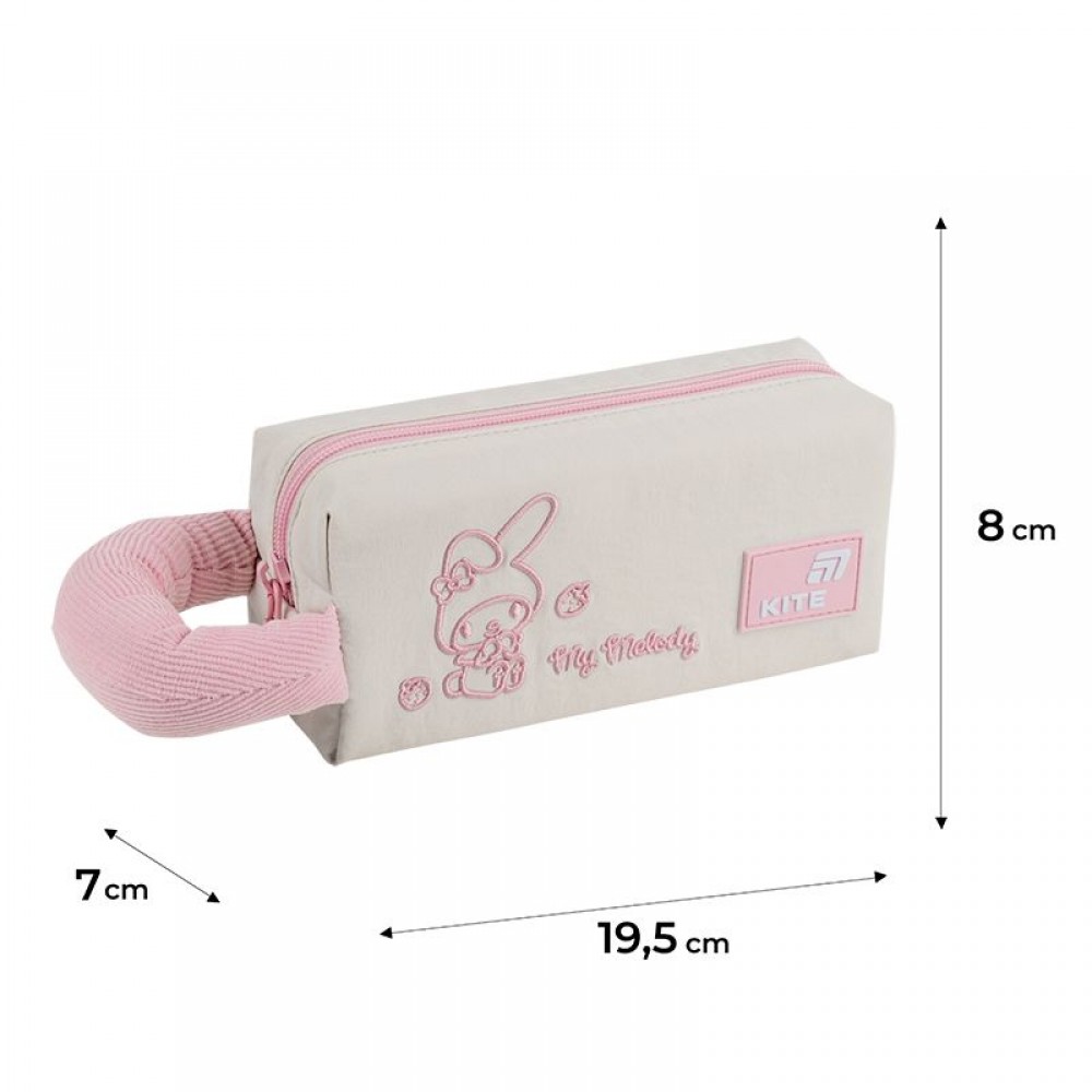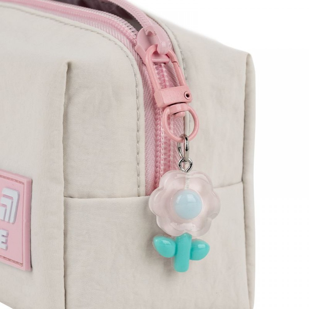 1 містке відділення на блискавці; м'яка об'ємна ручка. Декор: пенал виконаний із поліестеру з жатим ефектом в поєднанні з вельветом; об'ємна вишивка; брелок-підвіска у формі квітки на карабіні.