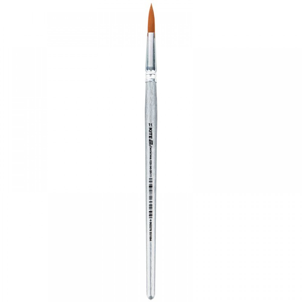 Пензель №11 Kite K25-340-SN-11 допоможе дитині з легкістю втілити свою творчу задумку на папері. Пензель призначений для малювання водорозчинною фарбою - аквареллю, гуашшю або темперою. Виріб має безшовну ручку, виготовлену з березової деревини, та обрамлену алюмінієвою обоймою. Щетина синтетична, тримає первісну форму і добре вбирає фарбу.