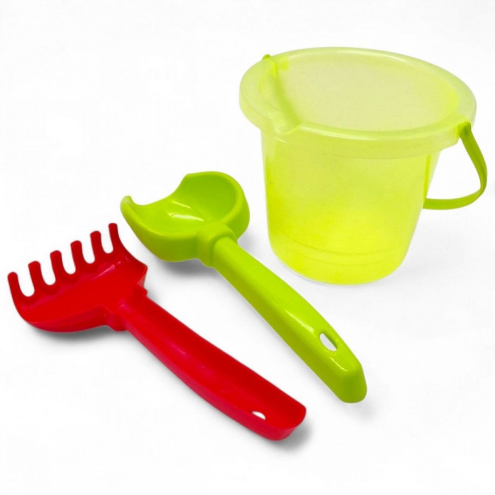 Пісочний набір — це простий і зручний комплект для ігор у піску, на пляжі або у дворі. У наборі є відерце з ручкою, лопатка та грабельки, які допоможуть будувати замки та створювати різні форми. Виготовлений із легкого пластику, безпечного для дітей. Компактний розмір дозволяє легко брати набір із собою на прогулянку. Підходить для дітей від 1–2 років, сприяє розвитку моторики та уяви.