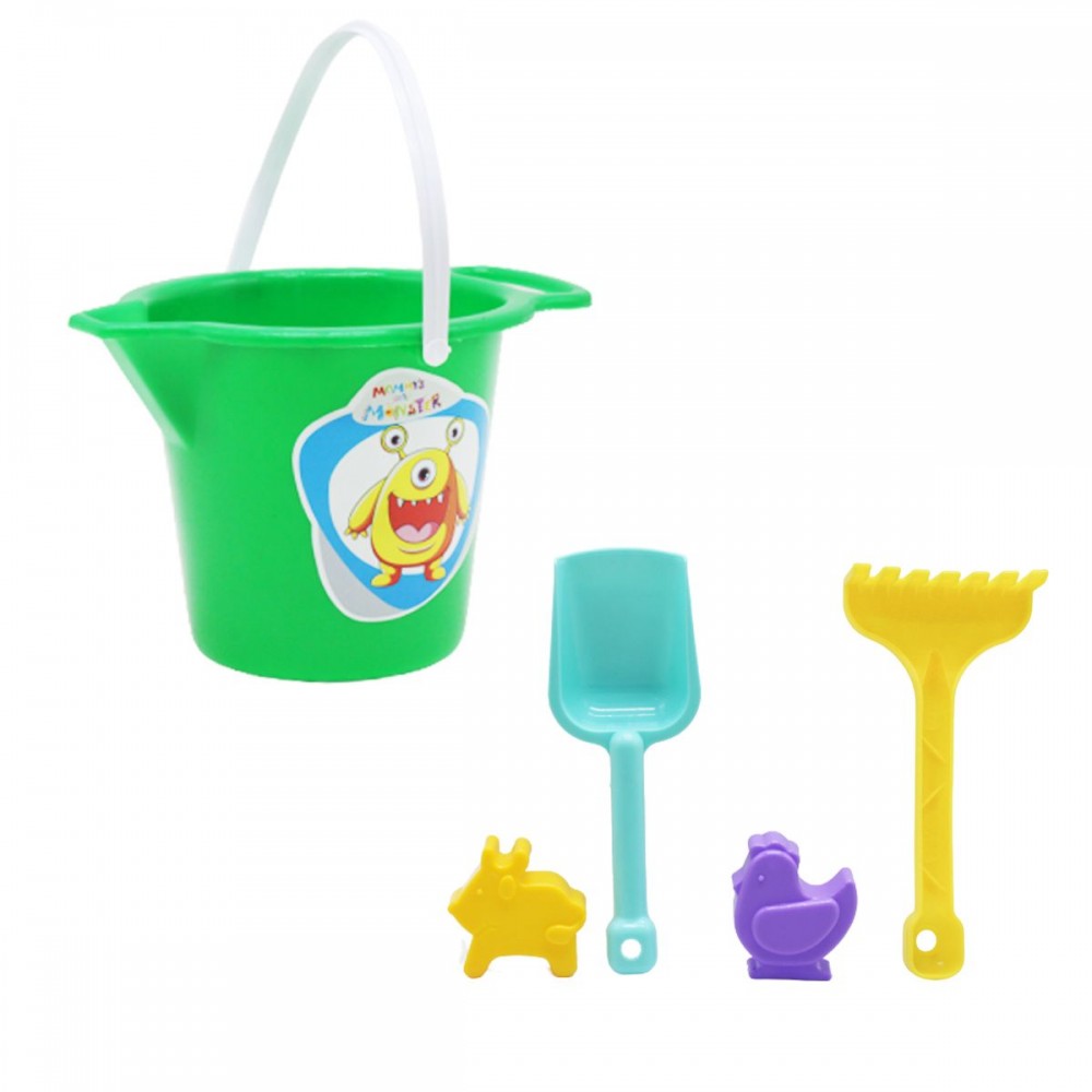 Пісочній набір "Монстрикі". У комплекті идет: невелика відерце (13 х 16 х 11 см), лопатка (17,5 см), граблі (14,5 см) і 2 формочки. Підійде для гри в піску и біля води, и зробить проведений час корисним и цікавім.
