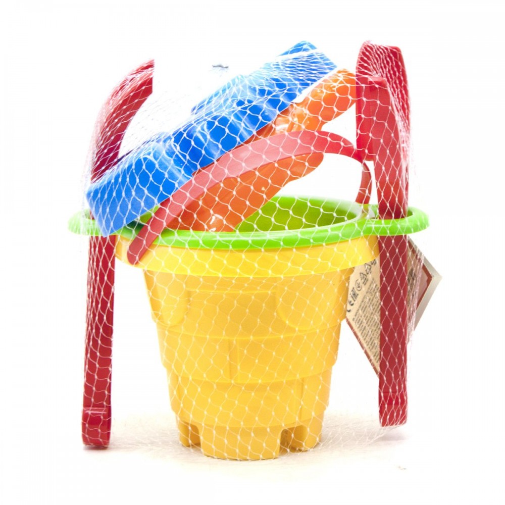 Пісочний набір "Вежа" буде цікавим подарунком для дитини. У наборі є: відерце в формі башточки, грабельки, лопатка, сито і 2 пасочки. Виконано набір з якісного і безпечного матеріалу. Відмінно підійде для гри на вулиці.