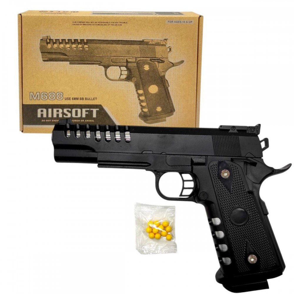 Інтернет-магазин eToys пропонує вашій увазі товар "Пістолет з металевими деталями (коробка 26*18*4,5 см)" за ціною 641 грн..