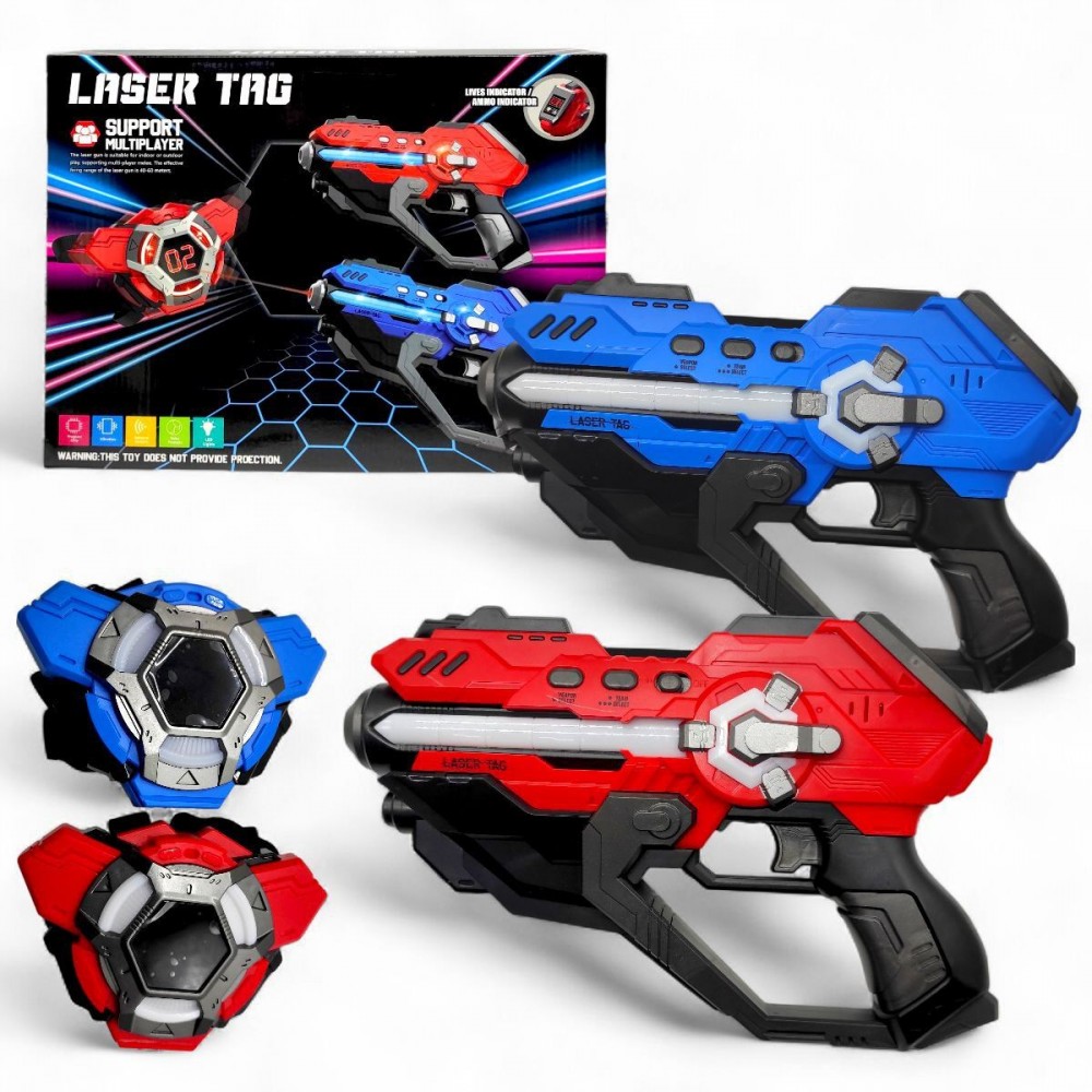 Пориньте у світ лазерних баталій із захопливим набором Laser Tag на двох! У комплекті є все, щоб розпочати гру: два стильні пістолети з підсвічуванням і звуковими ефектами, а також мішені, що реагують на постріли вібрацією та світлом. Кожен гравець отримує 129 зарядів і 4 режими стрільби — обирайте свою тактику та випробовуйте реакцію суперника! Гра розвиває уважність, координацію та дарує незабутні емоції як дітям, так і дорослим. До набору включено 2 пістолети (розмір 26х4х17 см) й 2 мішені (16х4х10 см). При роботі пістолет підсвічується та видає аудіоефекти стрільби. Після увімкнення пістолет має 129 зарядів, якими можна поцілити у мішень супротивника. При роботі мішень підсвічується та видає аудіоефекти, та має 12 “життів”, якщо поцілити в мішень з пістолета, вона програє відповідний аудіоефект та завібрує. Пістолет має 4 режими, які знімають різну кількість “життів” супротивника. Після пострілу потрібно перезарядити зброю. Набір розрахований на 2 гравців, кожен з яких бере пістолет та мішень одного кольору. До набору додані ремінці для закріплення мішеней на грудях гравців. В комплекті присутня інструкція та викрутка.
