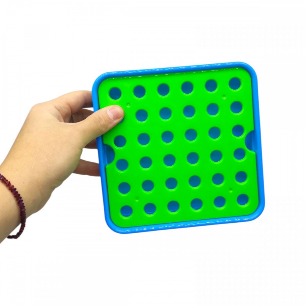На кожному малюнку є спеціальні отвори, які необхідно заповнити деталями відповідних кольорів. Якщо ж малюку хочеться пофантазувати - можна заповнити барвистими елементами мозаїки отвори ігрової панелі, створюючи власні малюнки. В набор входить: 12 карток з різними зображеннями-шаблонами, а також кольорові деталі мозаїки.
