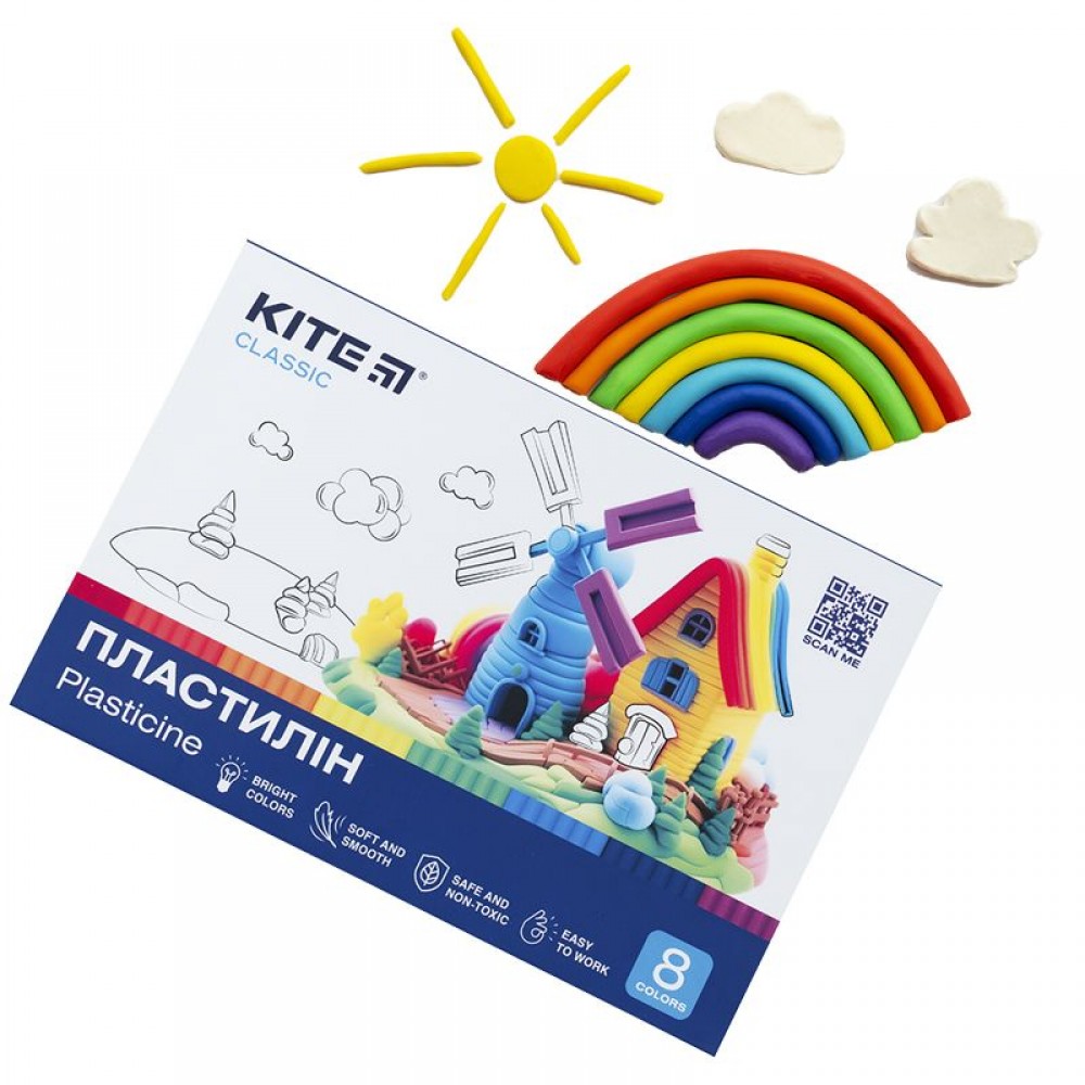 Набір пластиліну Kite Classic 8 кольорів в картонній упаковці. Пластилін серії Kite Classic призначений для моделювання та ліплення. Підходить для занять вдома, в школі, садочку, гуртках та майстер-класах. Сприяє розвитку моторики та творчої фантазії у дітей.Завдяки еластичності, насиченим відтінкам та широкій кольоровій гамі працювати та створювати шедеври з пластиліном Kite Classic -легко. Маса набору 160 грам.