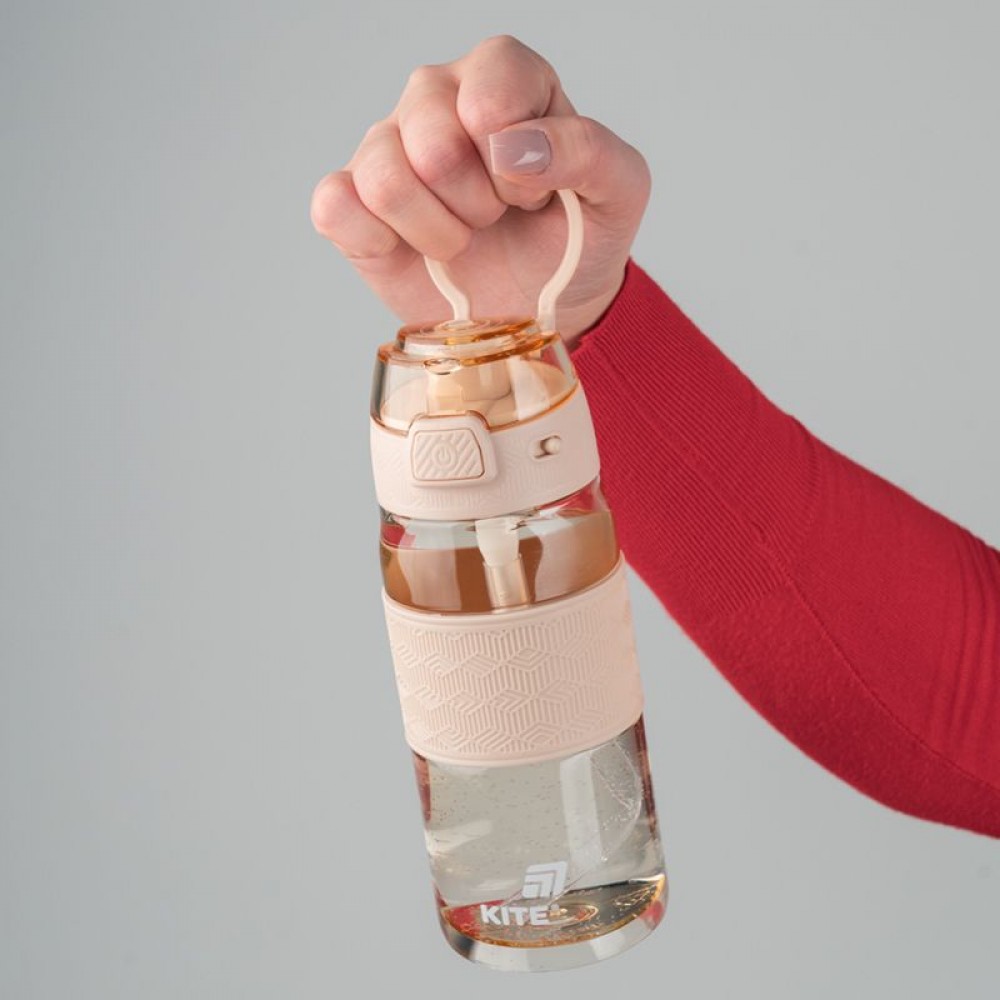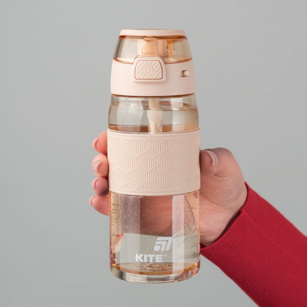 Пляшечка для води Kite, 600 мл. Виготовлена з тритану. Тритан - надійний, міцний, безпечний пластик без запаху та смаку. Не такий крихкий, як скло, легкий та прозорий матеріал. Пляшечка довго збереже свій початковий вигляд. Вироби з Тритану не містять Бісфенол А (при довгому зберіганні харчових продуктів в посуді, бисфенол А переходить з пластику в їжу і негативно впливає на здоров'я ) та можуть витримувати температуру до 90°C. Безпечні для здоров'я. Пляшечка має стильный та зручний дизайн. Їх також можна мити в посудомийній машині. Розмір: 205х76х78мм.