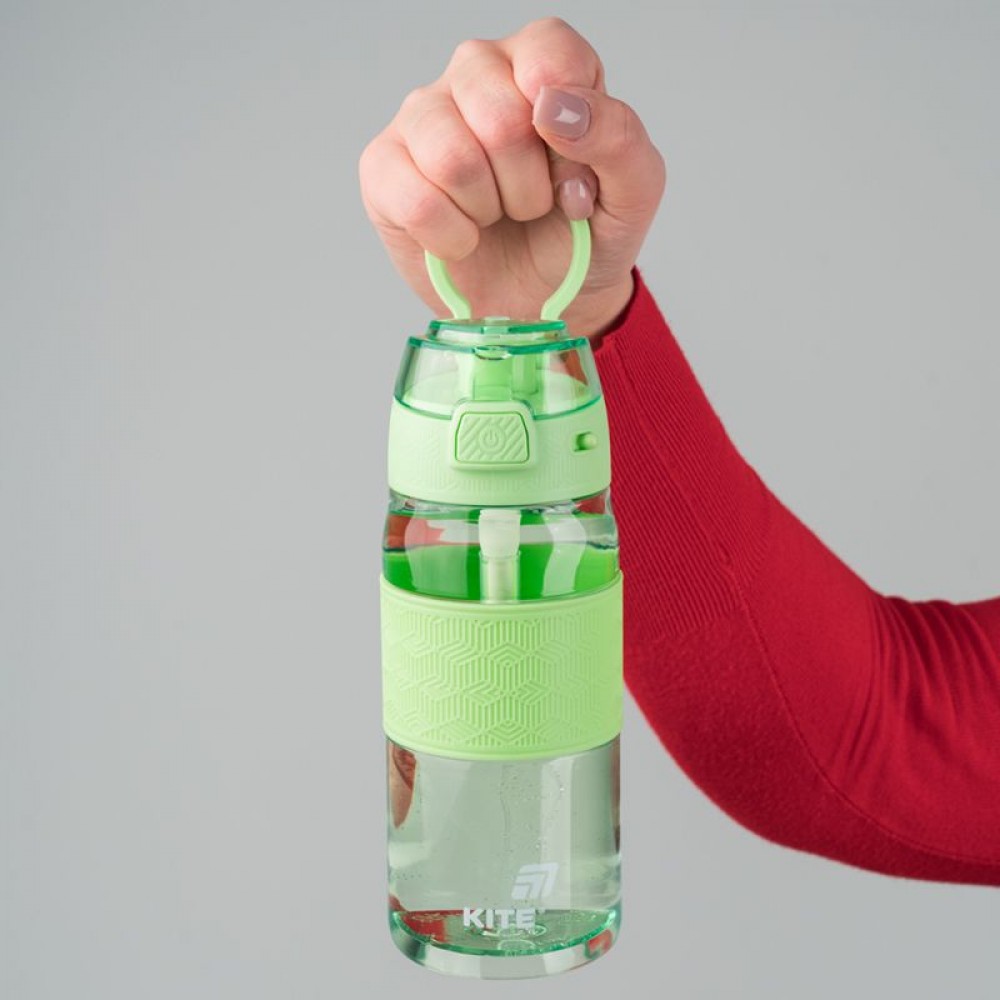 Пляшечка для води Kite, 600 мл. Виготовлена з тритану. Тритан - надійний, міцний, безпечний пластик без запаху та смаку. Не такий крихкий, як скло, легкий та прозорий матеріал. Пляшечка довго збереже свій початковий вигляд. Вироби з Тритану не містять Бісфенол А (при довгому зберіганні харчових продуктів в посуді, бисфенол А переходить з пластику в їжу і негативно впливає на здоров'я ) та можуть витримувати температуру до 90°C. Безпечні для здоров'я. Пляшечка має стильный та зручний дизайн. Їх також можна мити в посудомийній машині. Розмір: 205х76х78мм.