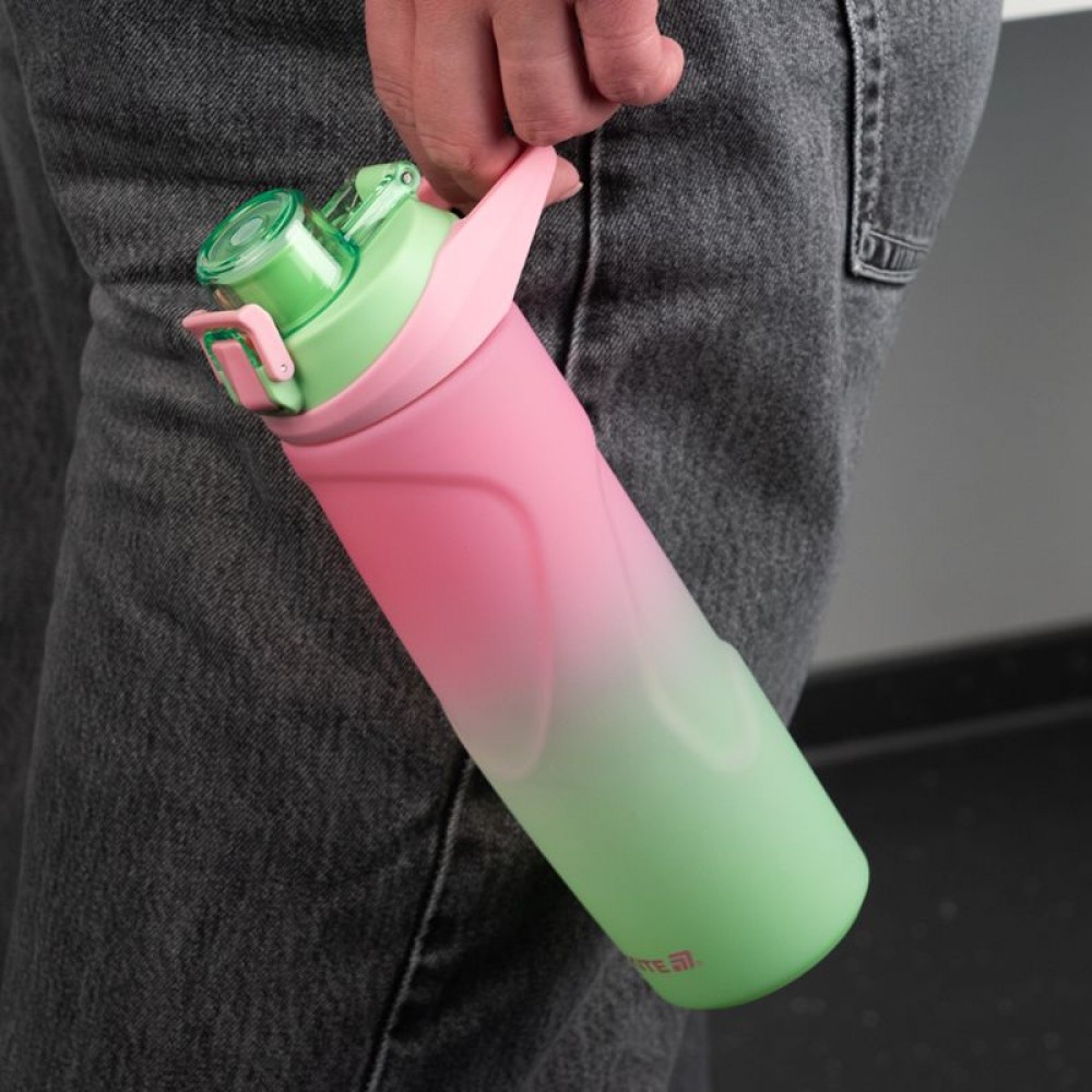 Пляшечка для води Kite, 760 мл. Soft-touch покриття. Виготовлена з тритану. Тритан - надійний, міцний, безпечний пластик без запаху та смаку. Не такий крихкий, як скло, легкий та прозорий матеріал. Пляшечка довго збереже свій початковий вигляд. Вироби з Тритану не містять Бісфенол А (при довгому зберіганні харчових продуктів в посуді, бисфенол А переходить з пластику в їжу і негативно впливає на здоров'я ) та можуть витримувати температуру до 90°C. Безпечні для здоров'я. Пляшечка має стильный та зручний дизайн. Розмір: 255х75х105мм.