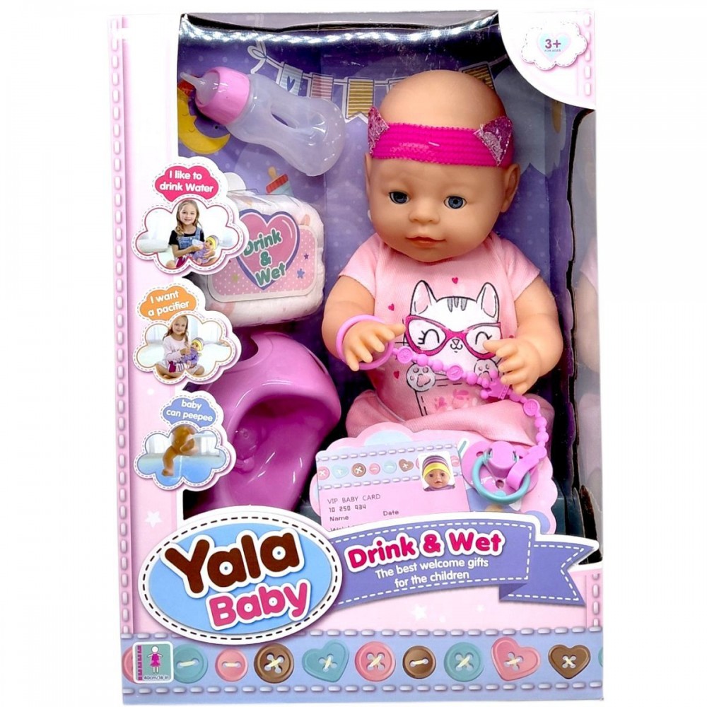 Комплектація Пупс – 1 шт. Пляшечка – 1 шт. Горщик – 1 шт. Пустушка – 1 шт. Додаткові аксесуари – 1 набір Одяг на ляльці – 1 комплект