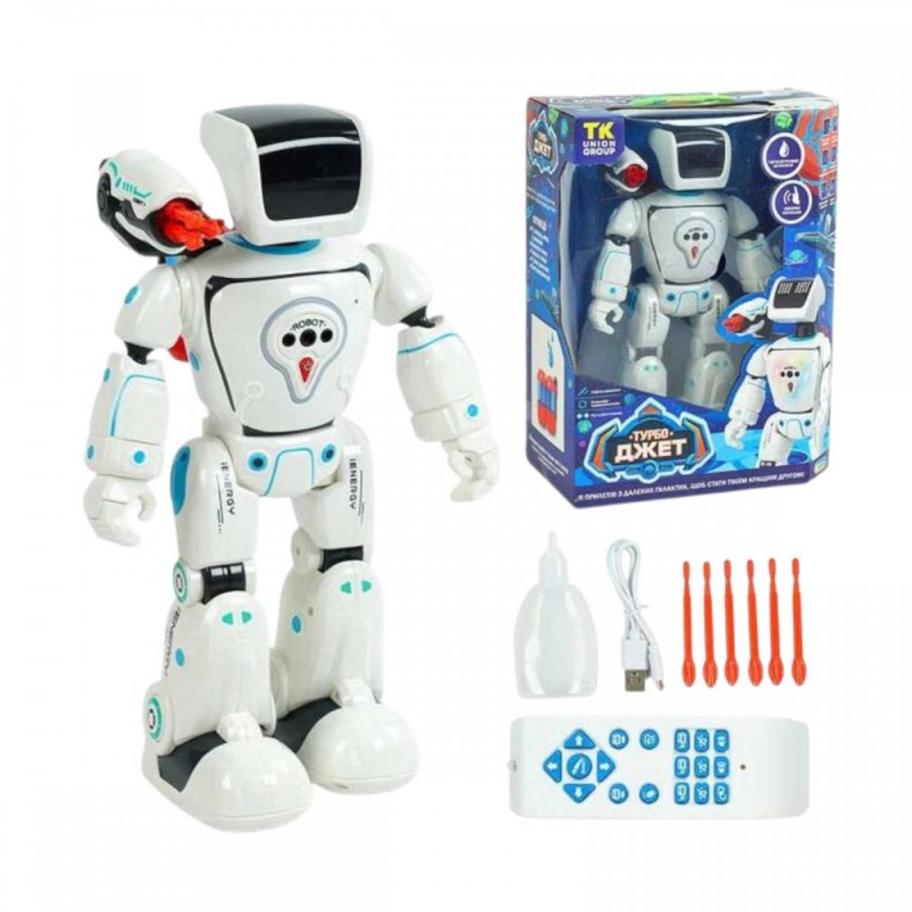 Інтернет-магазин eToys пропонує вашій увазі товар "Робот на радіокеруванні, ОЗВУЧУВАННЯ УКРАЇНСЬКОЮ МОВОЮ, лед-підсвіч., сенсорні датчики, рух, стріляє стрілами, в коробці" за ціною 2 431 грн..