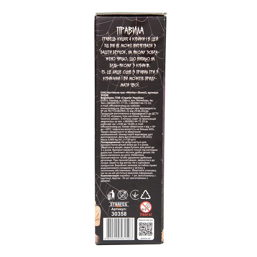 Розважальна дерев’яна гра Wonky «Дженга» - захоплива настільна гра для дітей і дорослих. Завдання гравців - по черзі витягувати дерев’яні бруски та акуратно складати їх зверху, не зруйнувавши вежу.
