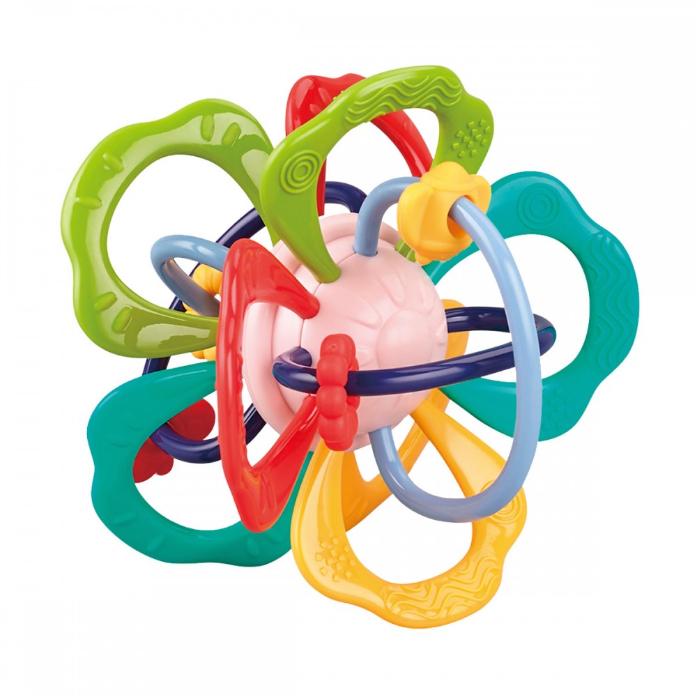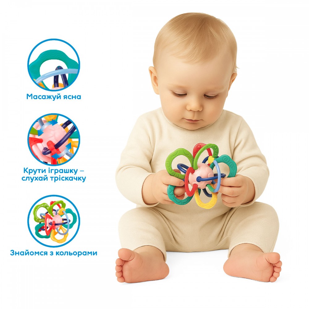 - Завдяки еластичним пелюсткам дитина може кусати іграшку й масажувати ясна, щоб полегшити процес прорізування зубів.