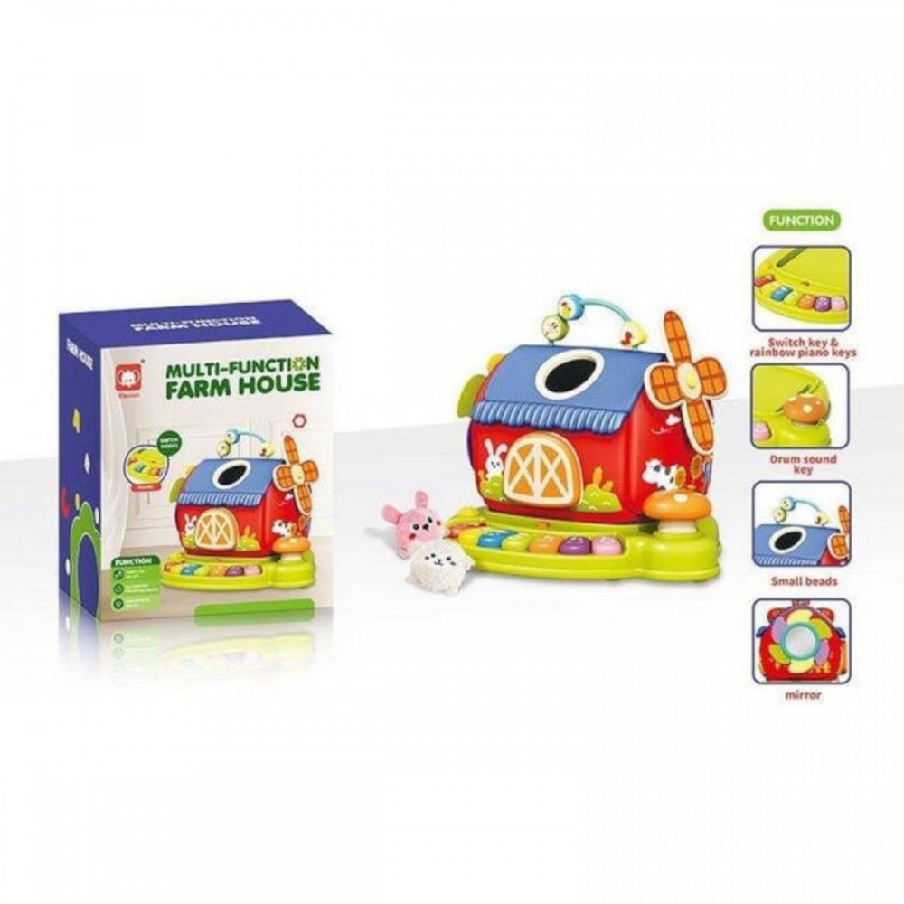 Цей яскравий розвивальний будиночок стане улюбленою іграшкою малюка! У комплекті — м’якенькі текстильні звірятка: корова, песик і курочка з пискавками всередині, кінь, свинка й овечка з брязкальцями, а також зайчик із шелесткими елементами. Будиночок має пальчикові ігри, барабани та піаніно з кількома режимами: ноти, назви тваринок і їх звуки, кольори та гра на швидкість реакції. Іграшка розвиває дрібну моторику, логічне мислення та координацію рухів, даруючи малюку цікаві й пізнавальні моменти щодня! Будиночок виконано з текстилю. У комплекті присутнє люстерко, що можна прикріпити до будиночка. Ідеально підходить для дітей від 18 місяців.