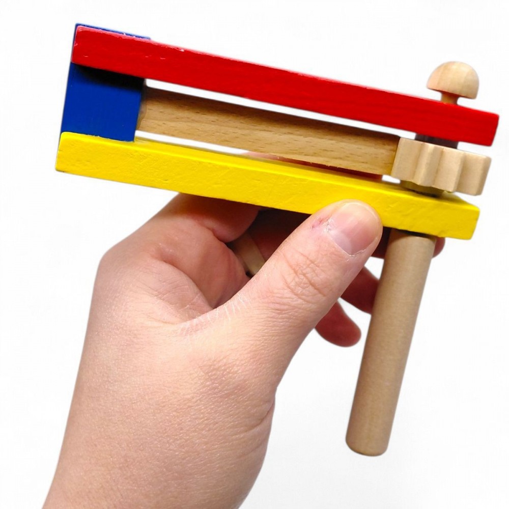 Цей оригінальний і цікавий музичний інструмент виконаний з дерева. Іграшку можна використовувати для різних ігор дитини, застосовуючи звукові ефекти як при розповідях казок, так і для повсякденних ігор. Іграшка видає корисні звуки, які розвивають слух, памʼять, дрібну моторику рук дитини. Щоб активувати іграшку, досить просто її потрясти — вона почне тріщати. Тріскачка має відмінний дизайн, яскраві кольори, видає приємні звуки, які сподобаються дитині і будуть сприяти розвитку слуху і музичних здібностей.