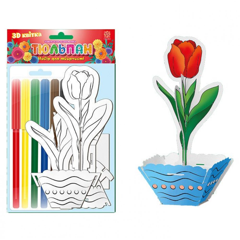Конструктор-раскраска из цветочной серии. В комплекте есть фломастеры и картонные заготовки. Раскрашивая и собирая раскраску малыш получит удовольствие от творческого процесса и красивый сувенир, сделанный своими руками. Размер готового изделия 14х18,5 см.