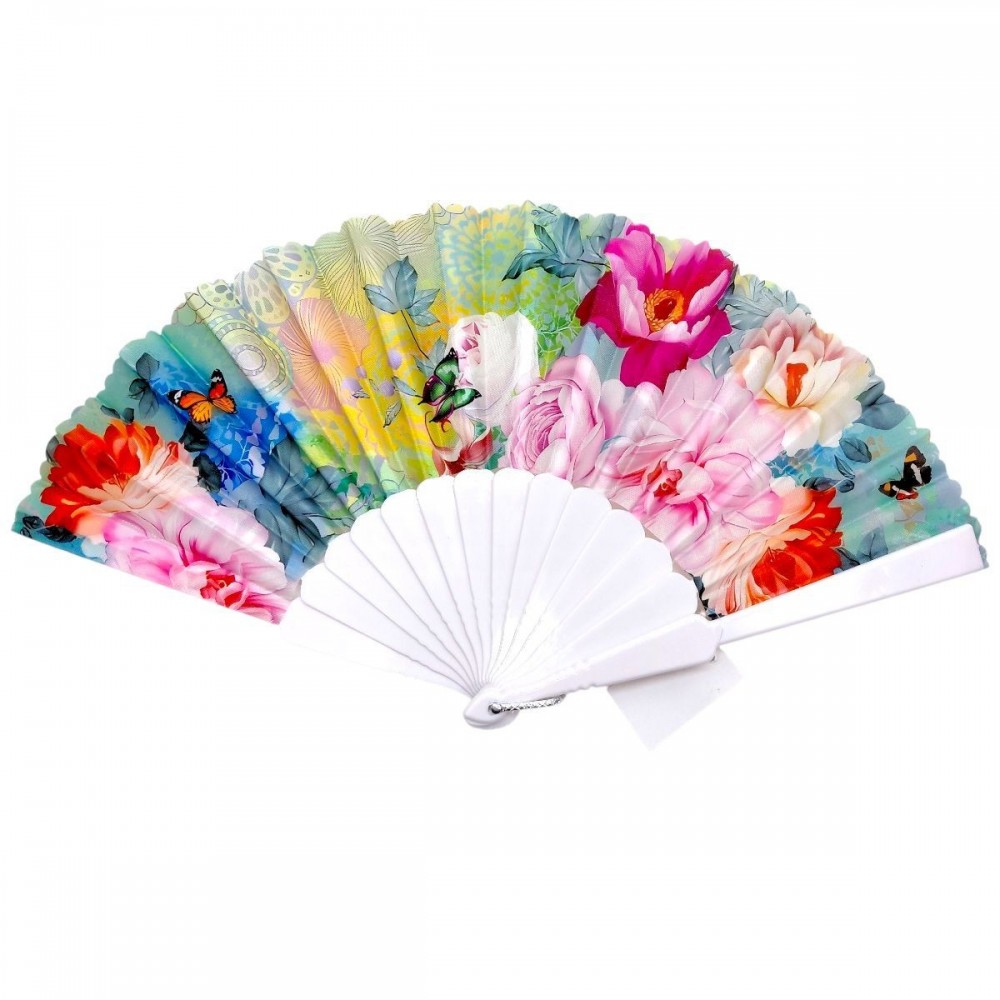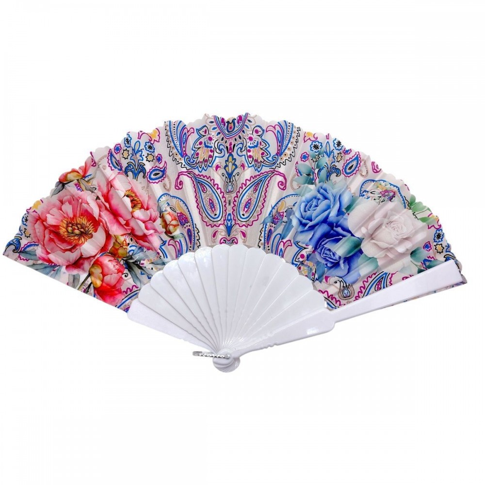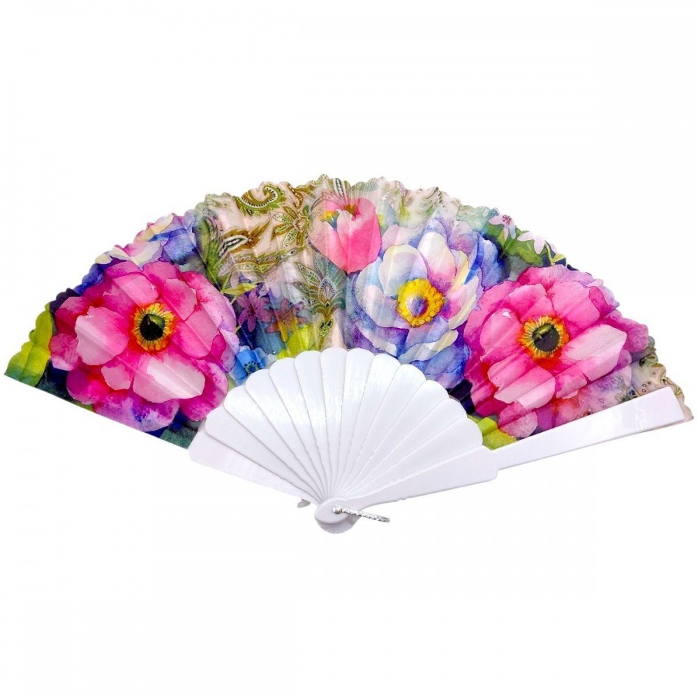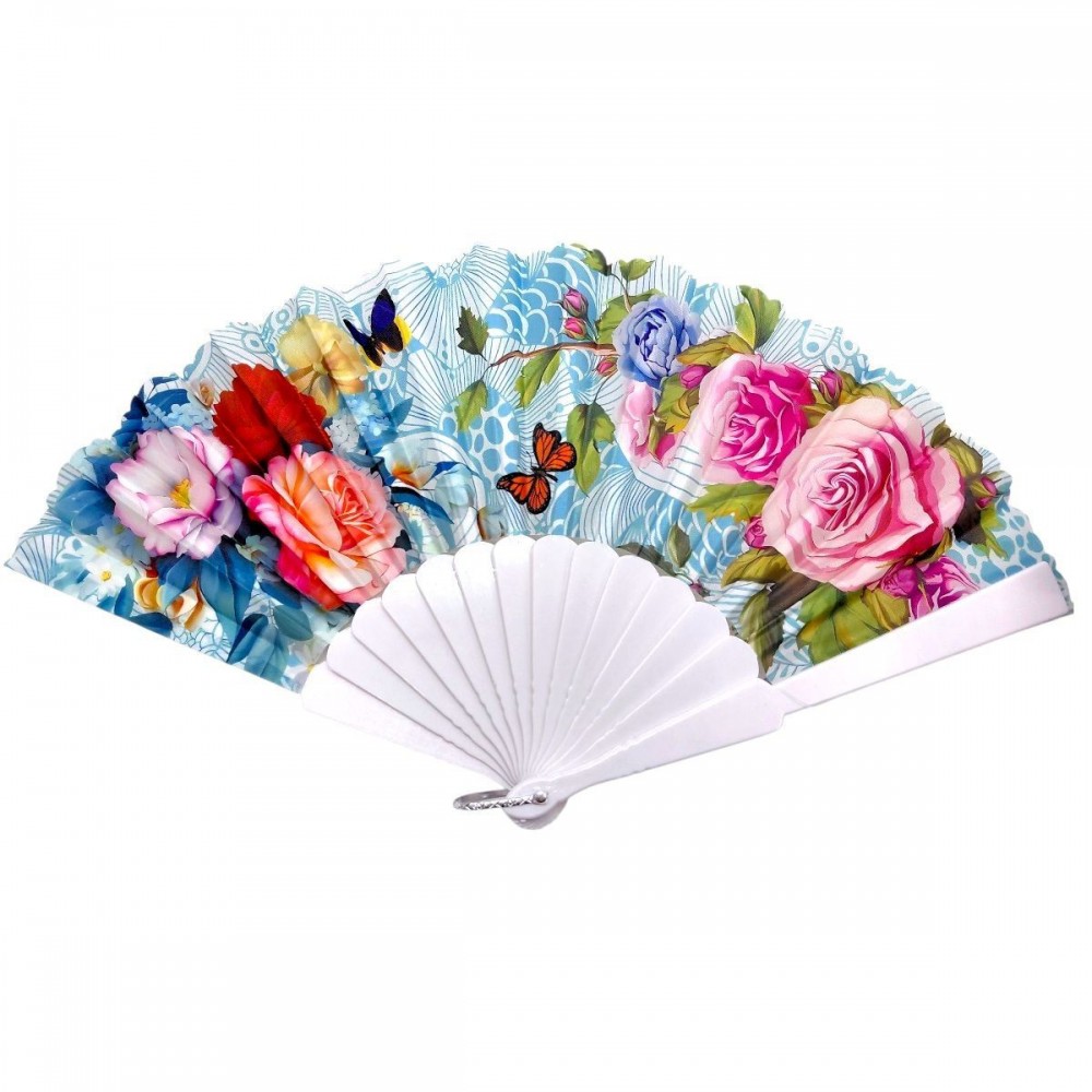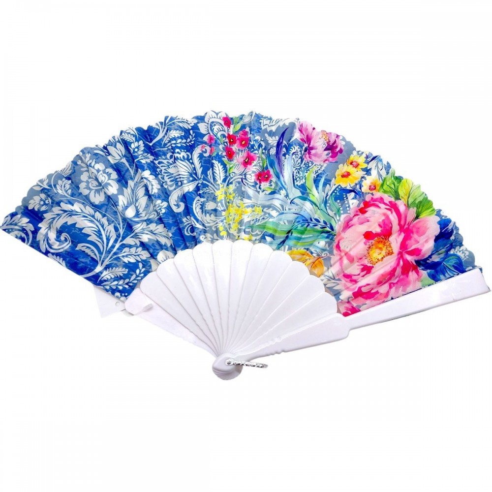 Стильный ручной веер с ярким цветочным принтом – практичный аксессуар для жарких дней. Легкая конструкция и удобная форма обеспечивают комфорт в использовании. Основание из прочного пластика, раскладной механизм работает плавно. Подходит для повседневного использования, путешествий и мероприятий, придает образу выразительности.