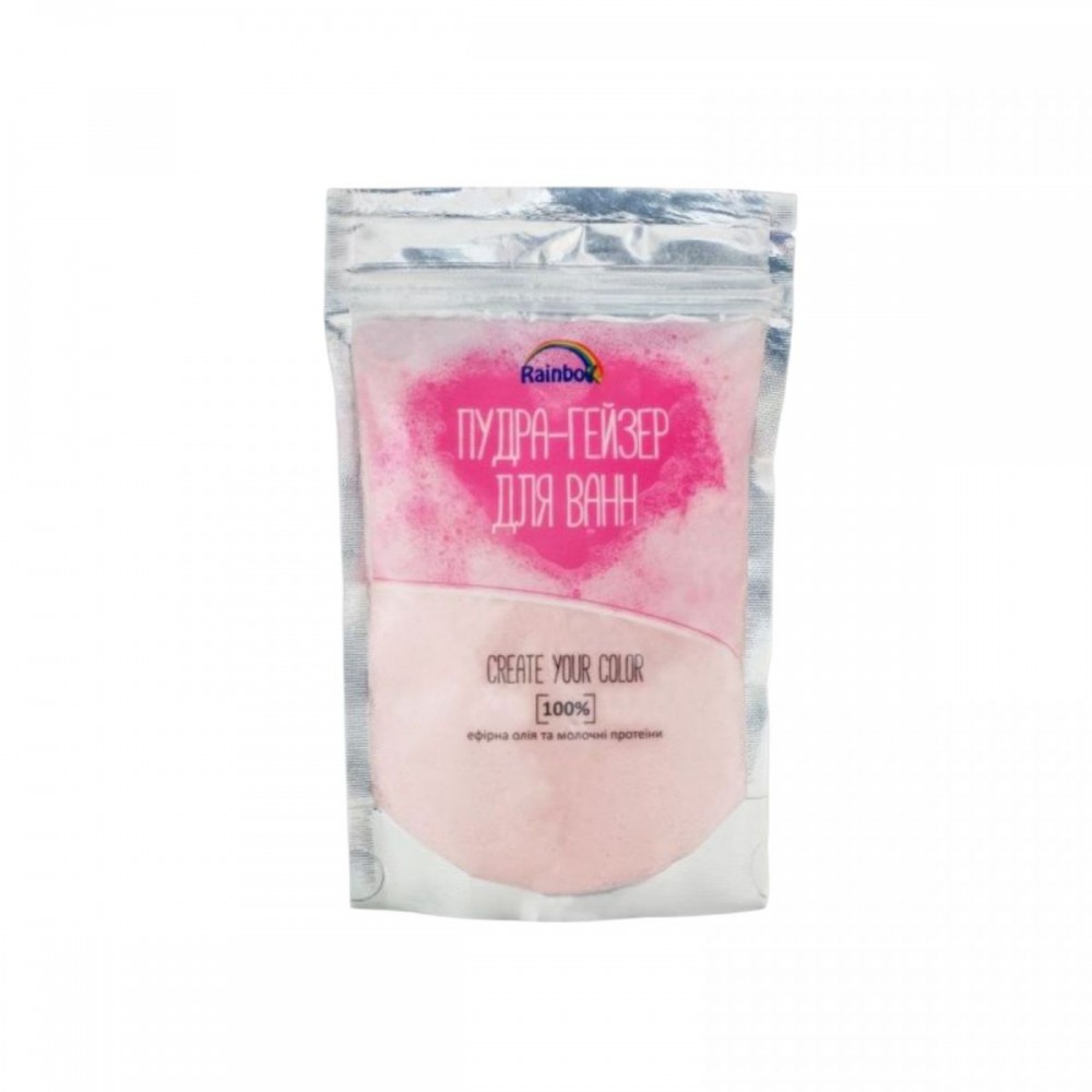 Rainbow Пудра-Гейзер Для Ванны Create Your Color Dream – очаровательная пудра-гейзер для ванной, которая мгновенно переносит вас из обычной ванны в джакузи. Растворяясь в воде, на 100% натуральная пудра окрашивает ее в розовый цвет, дарит приятный расслабляющий аромат и наполняет миллионом шипучих тонизирующих пузырьков. Удовольствие от веселых пузырьков сочетается с пользой для кожи, поскольку формула обогащена молочными протеинами, эфирными маслами и маслом виноградных косточек. Ванна с гейзерной пудрой отлично расслабляет, а кожа после нее становится эластичной, шелковистой и ухоженной.