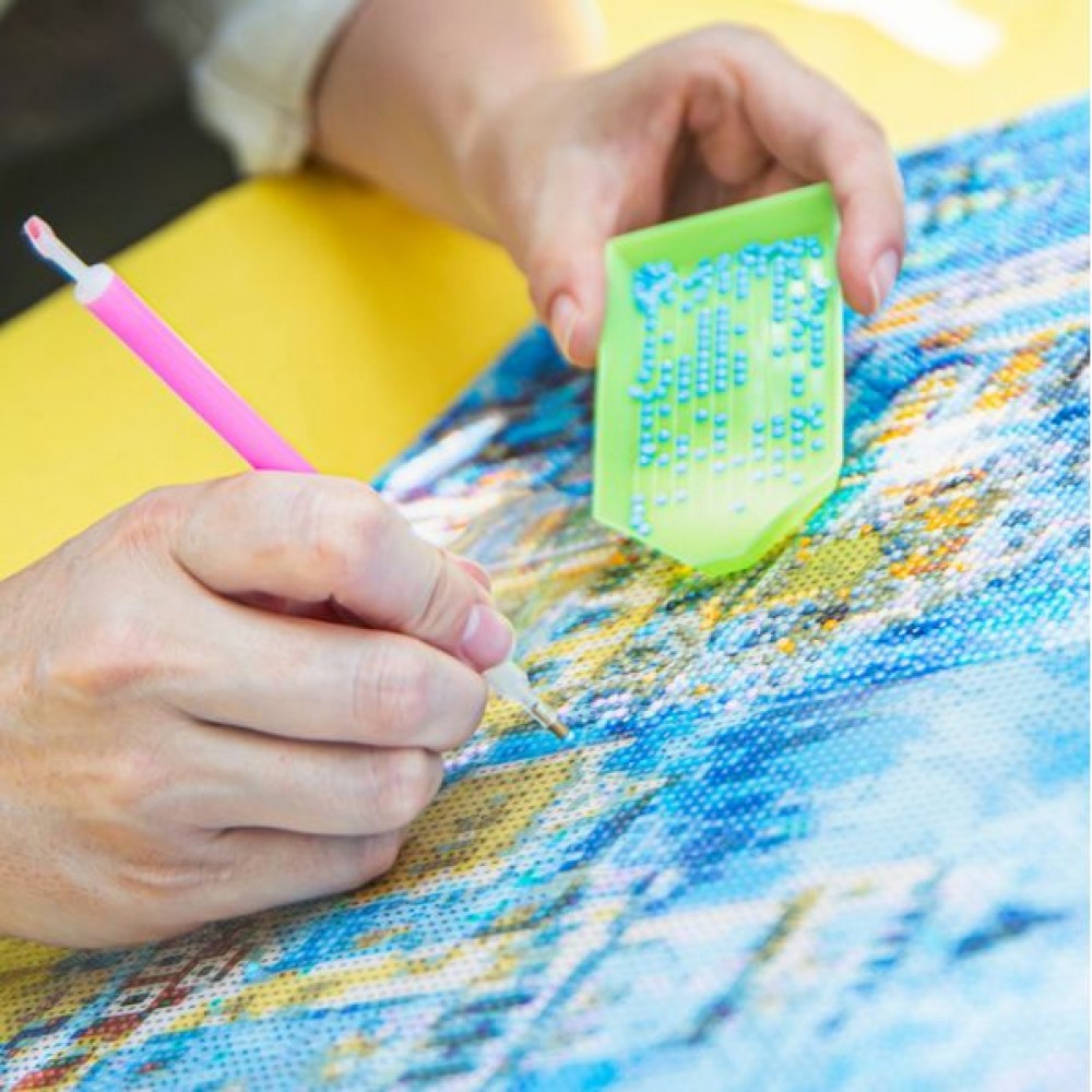 Выкладка картин алмазной техникой является прекрасным занятием для снятия стресса, медитации и релакса. Готовые картины могут украшать интерьер, а так же будут хорошим подарком. Благодаря эффекту 5D, картины приобретают удивительный, завораживающий объемный вид, который углубляется с помощью огранки каждого камешка. В наборе есть: полотно с клеевым слоем и цветной схеме, которое оформлено на подрамник галерейным способом, акриловые стразы согласно комплектации набора, пинцет для страз, специальная ручка-стилус для работы со стразами, гель-клей, инструкция. Размер: 40х50 см.