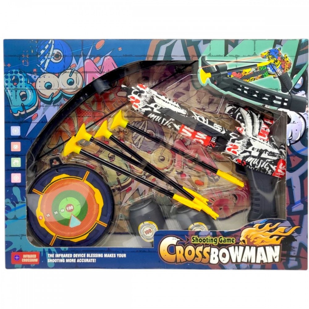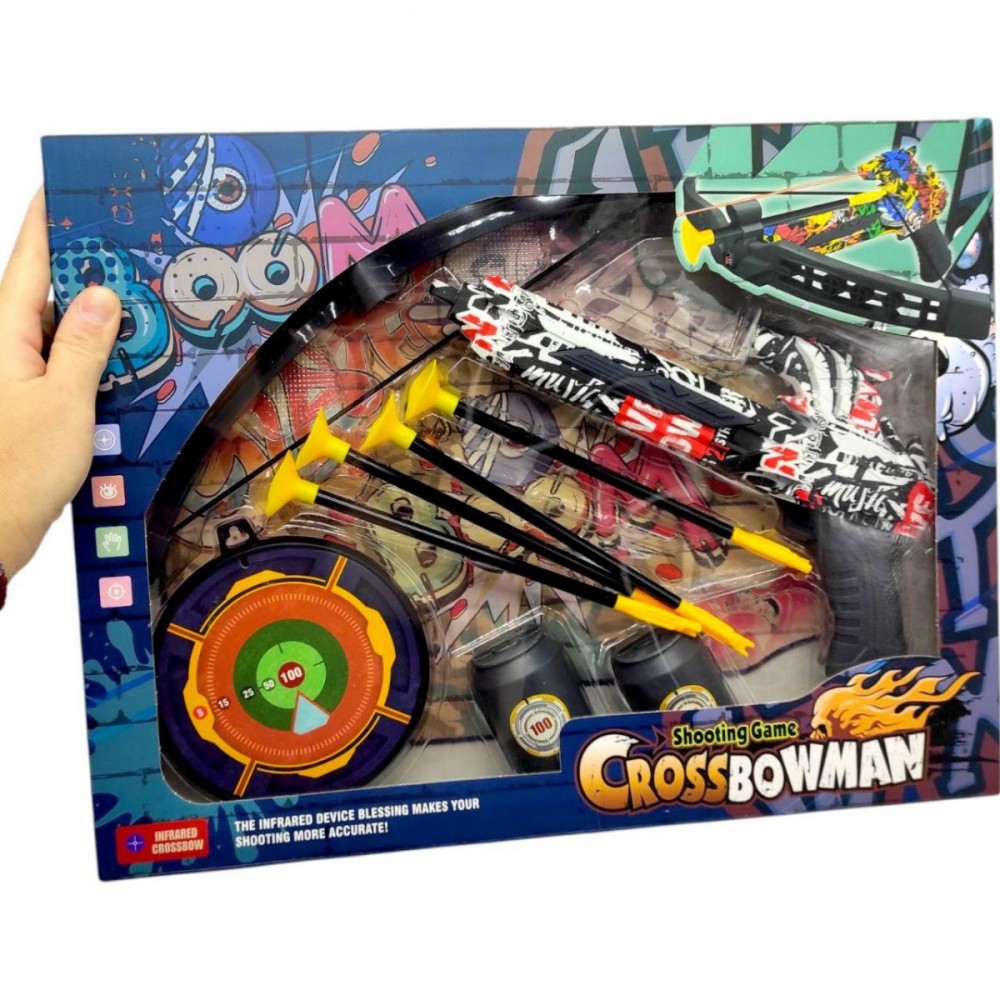Интернет-магазин eToys предлагает вашему вниманию товар "Арбалет (приціл із підсвічуванням, механічний принцип, 4 стріли на присосках, мішень, 2 пластикові банки) мікс" по цене 512 грн..