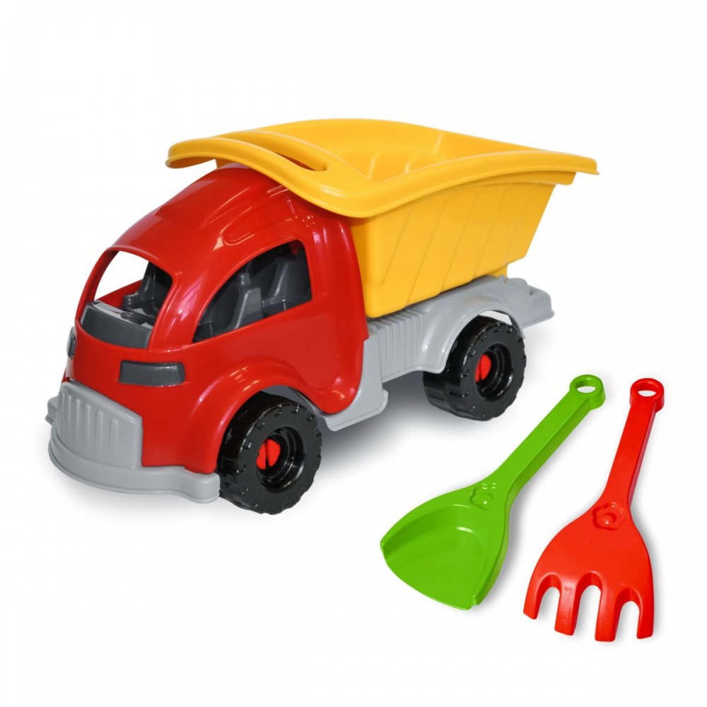 Игрушечный грузовик с лопаткой и грабельками – отличный летний игровой набор, который подарит ребенку незабываемые эмоции. В него входит и функциональная игрушечная машинка и яркий набор для песка. Грузовик-самосвал длиной в 34 см имеет удобную ручку для переноски. В набор также входит лопатка, грабли, создающие возможности для построения песочных конструкций. Все элементы набора изготовлены из высококачественного и безопасного материала, устойчивого к погодным условиям. Упаковка – сетка.