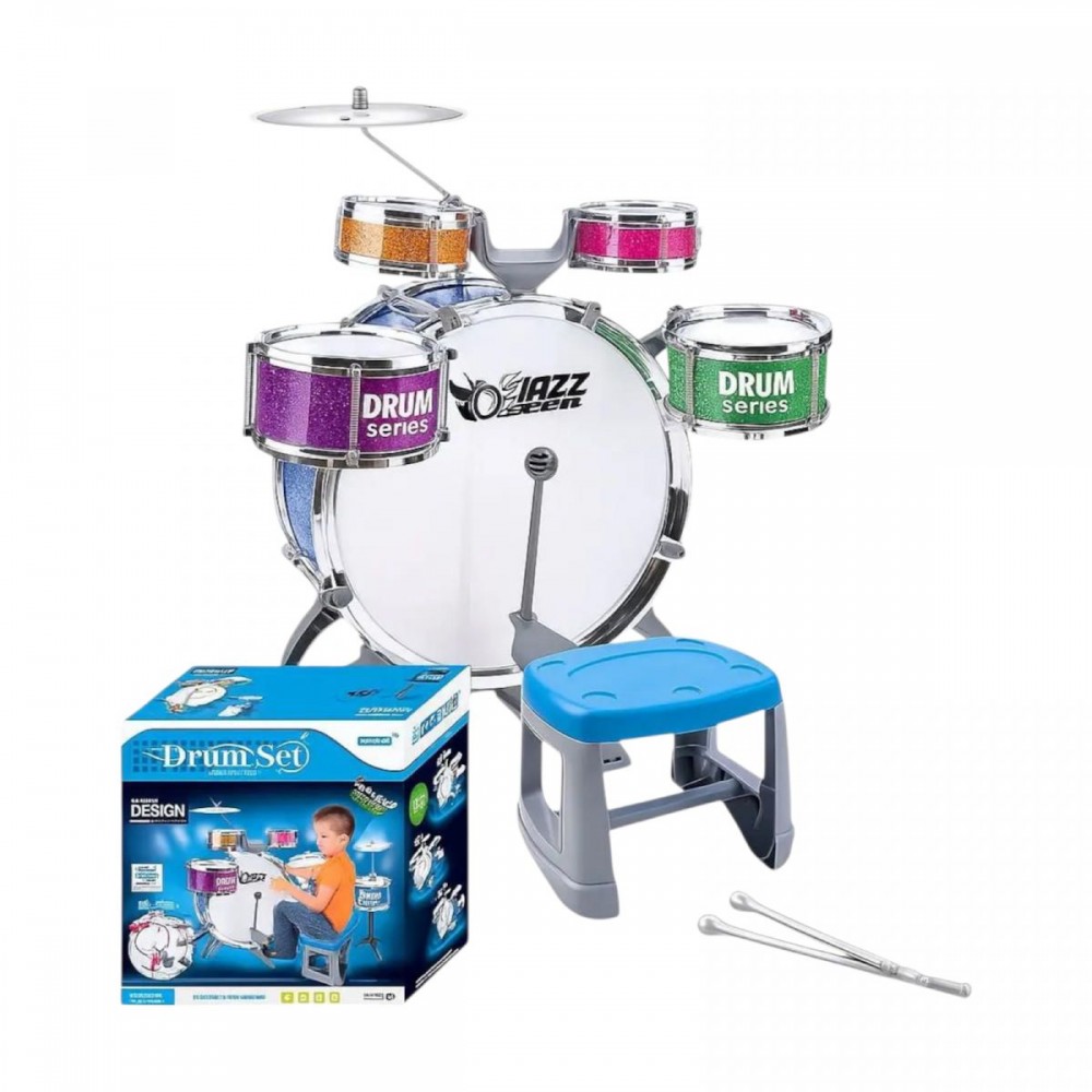 Интернет-магазин eToys предлагает вашему вниманию товар "Барабанная установкастульчик, 4 барабана, 1 барабан с педалью, 2 палочки, 1 металлический диск, в коробке" по цене 1 399 грн..