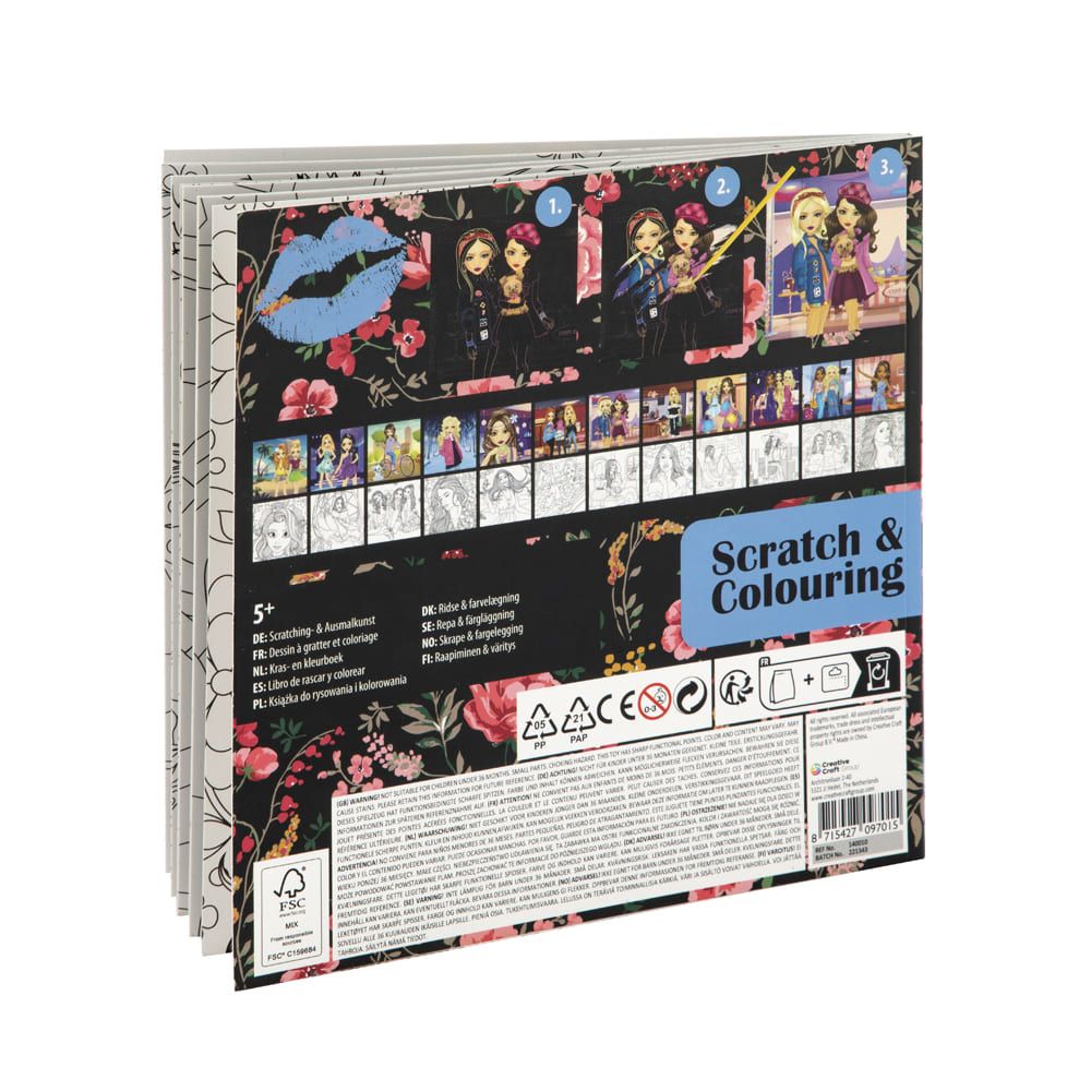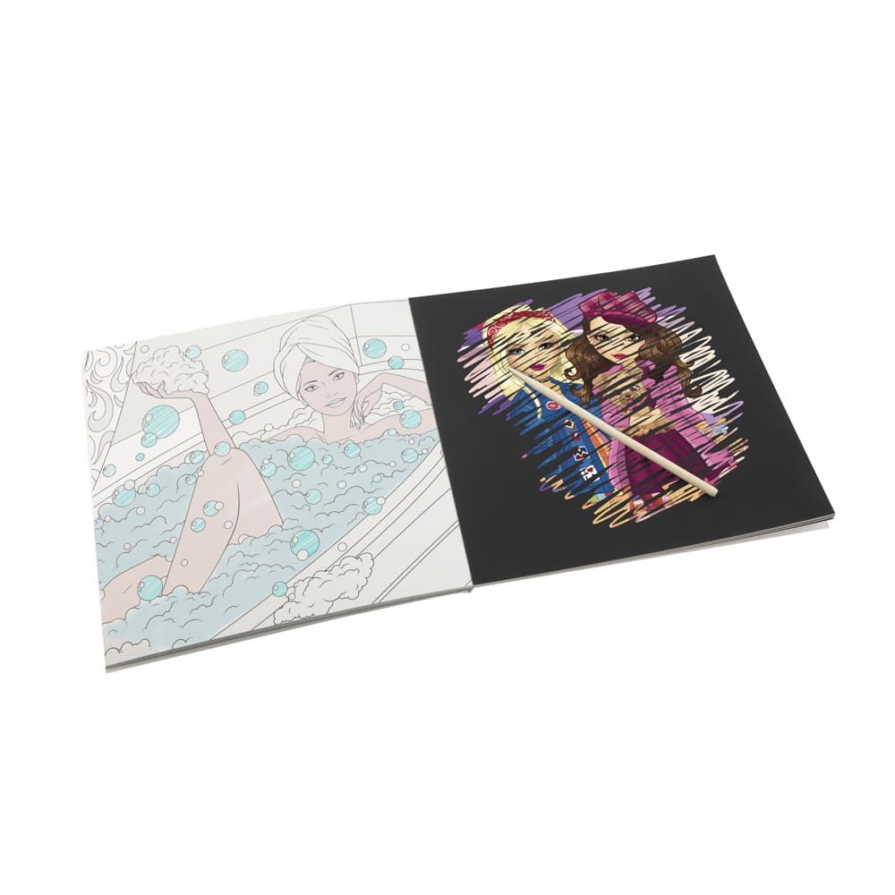 Скретч-раскраска из 12-ти двухсторонних листов, с которой ты можешь весело и интересно провести время. Просто возьми специальную ручку-скребок и погрузись в волшебный мир девочек Besties. А потом возьми карандаши и прояви свое творчество с помощью раскраски на оборотной стороне.