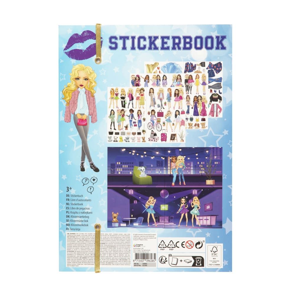 Стикербук А4 на 10 листов с наклейками и разными сюжетами. Создайте свою историю и одень девочек для похода в кино, кафе или для праздничного бала. Проявите всю свою фантазию, чтобы воспроизвести невероятную атмосферу праздника.