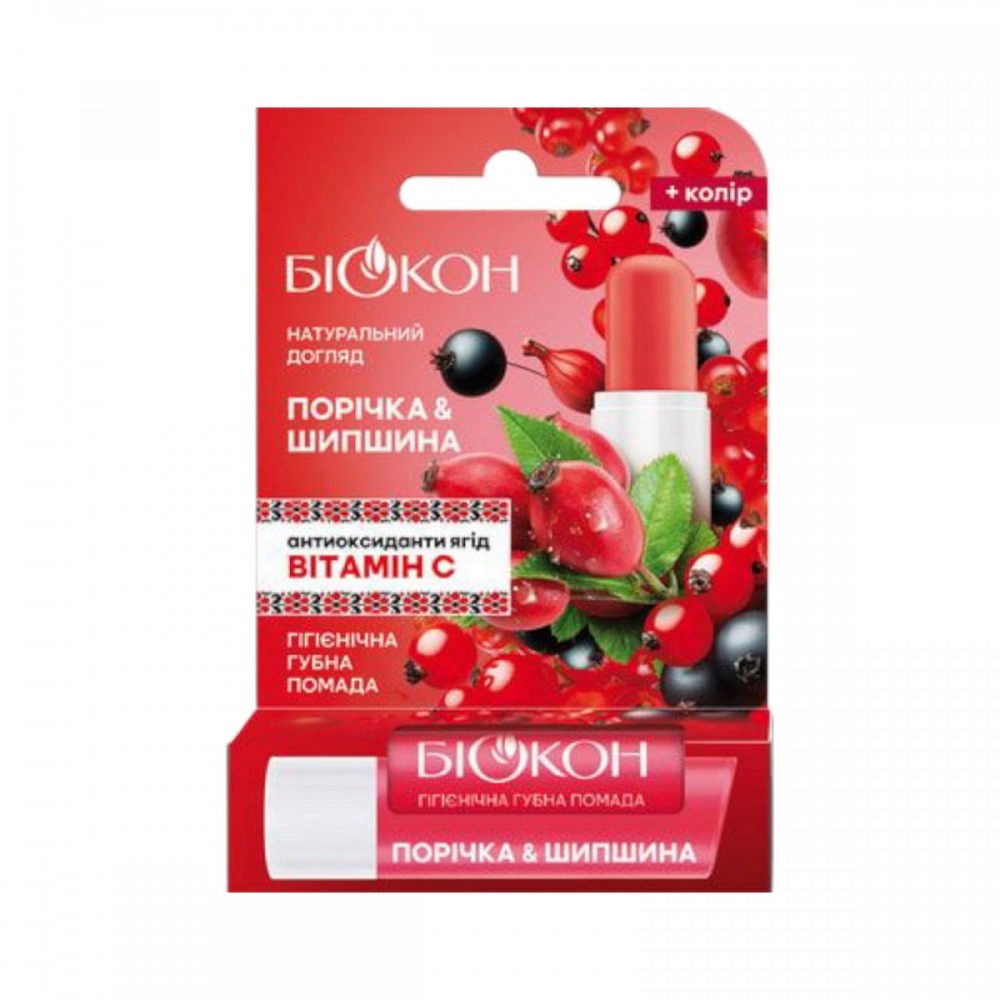 БИОКОН Гигиеническая губная помада «Смородина Шиповник». Польза ухода и сияния цвета. Сочетает в себе свойства ухаживающего за губами бальзама и нежный оттенок красных ягод, придающий губам естественный и сияющий вид. Витамин С, кверцетин и масло шиповника благодаря антиоксидантным свойствам способствуют сохранению молодости и красоты губ, уменьшая последствия оксид. Микросферы гиалуроновой кислоты увлажняют и придают губам больше природного объема и нежности. Натуральные воски и растительные масла питают, смягчают и защищают губы.