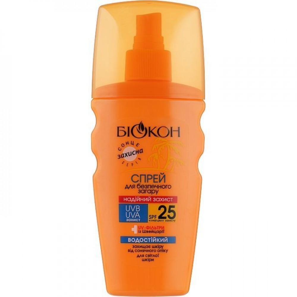 Компания Биокон представляет спрей для безопасного загара SPF 25. Его следует наносить на кожу за 15-20 минут до выхода на улицу и повторно по мере необходимости, в том числе после купания. Средство легко наносится, благодаря легкой консистенции так же легко распределяется по поверхности кожи. Обеспечивает надежную профилактику солнечных ожогов и раздражения. Спрей для безопасного загара SPF 25 рекомендован в первые дни пребывания на солнце и при высокой солнечной активности.